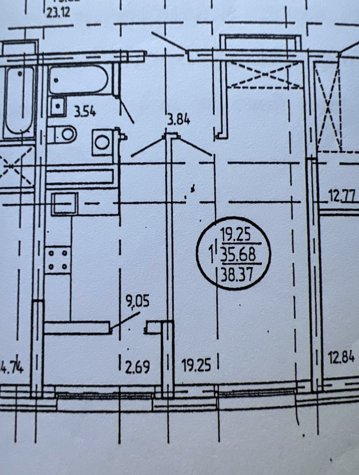 Общая площадь 37.7 м2