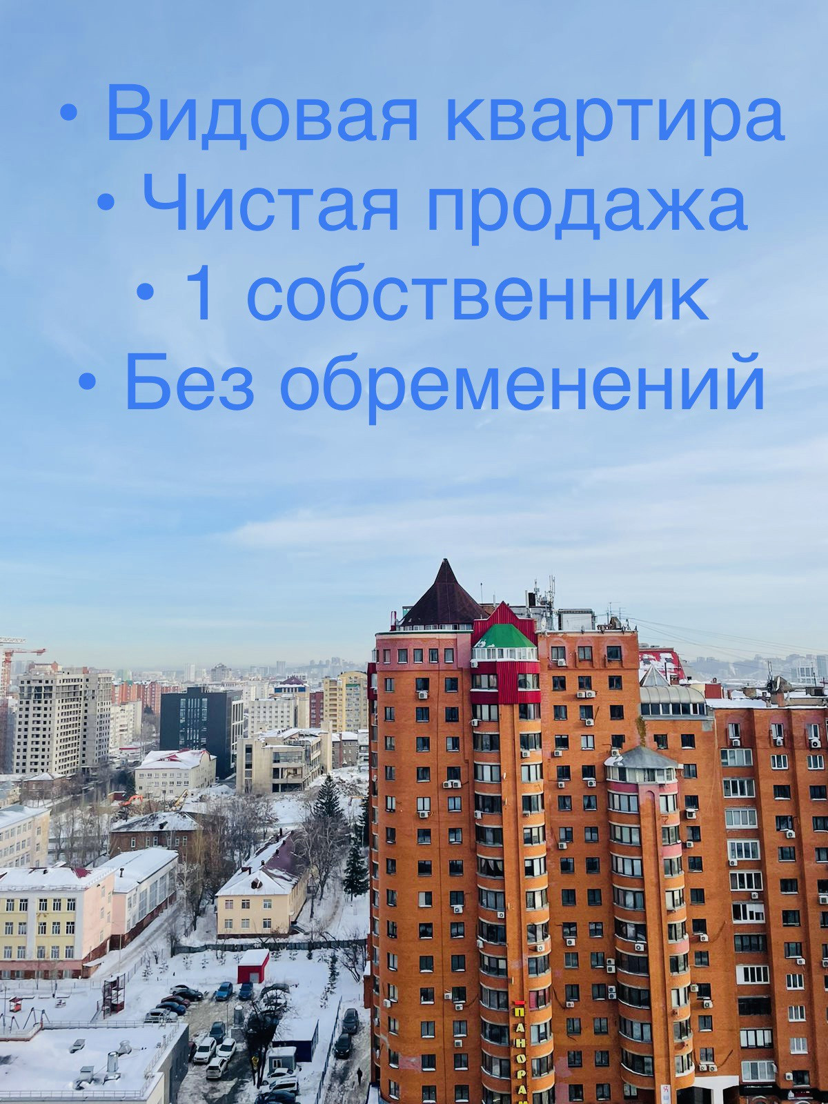 Продается 1-комнатная видовая квартира в кирпичном доме.