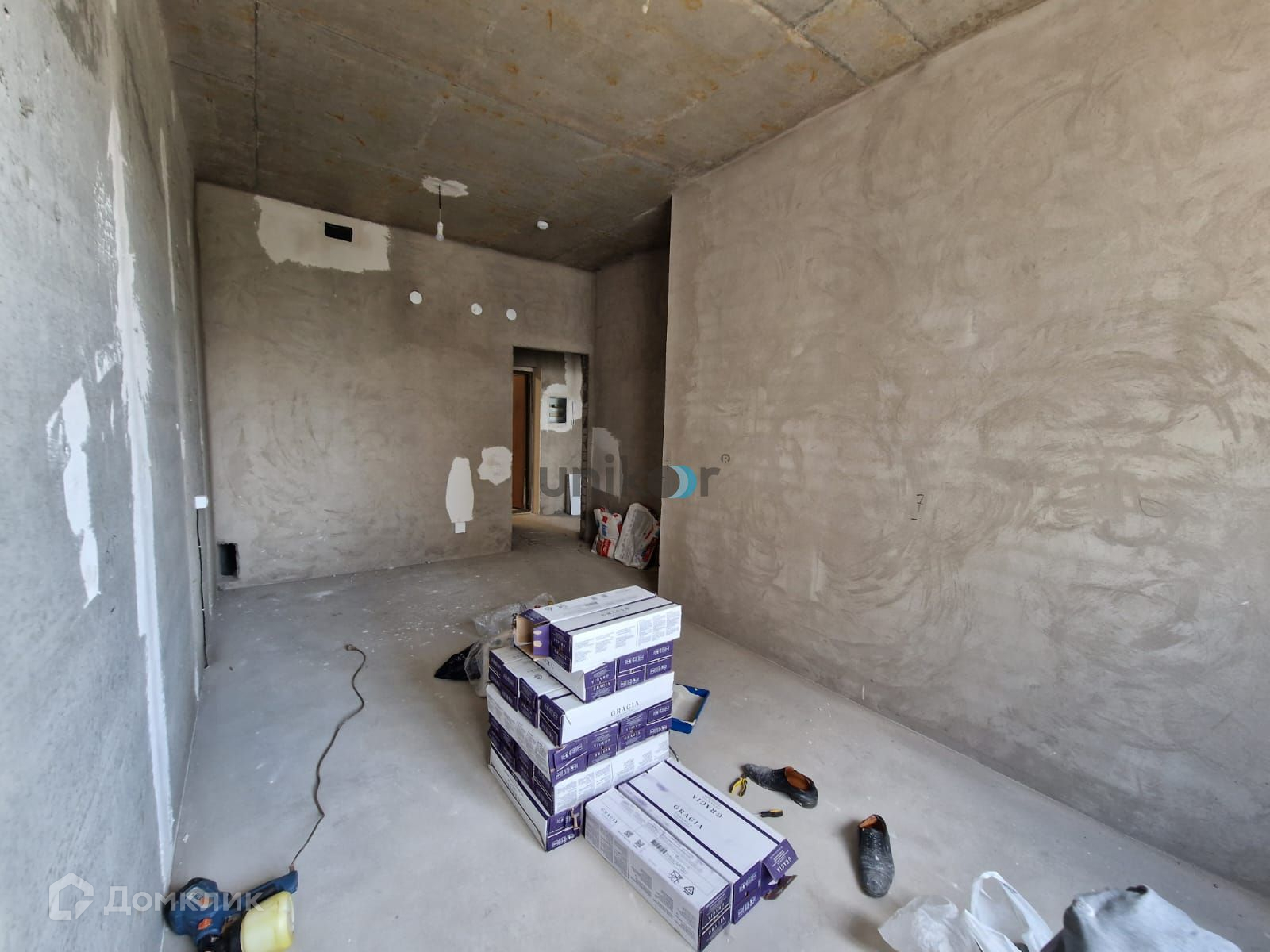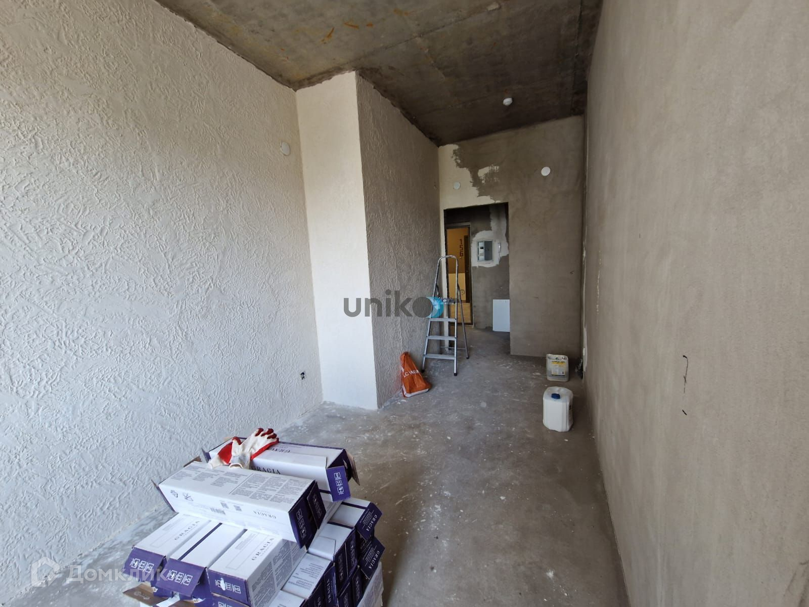 - Стены белые, выровненные, на некоторых нанесена декоративная штукатурка