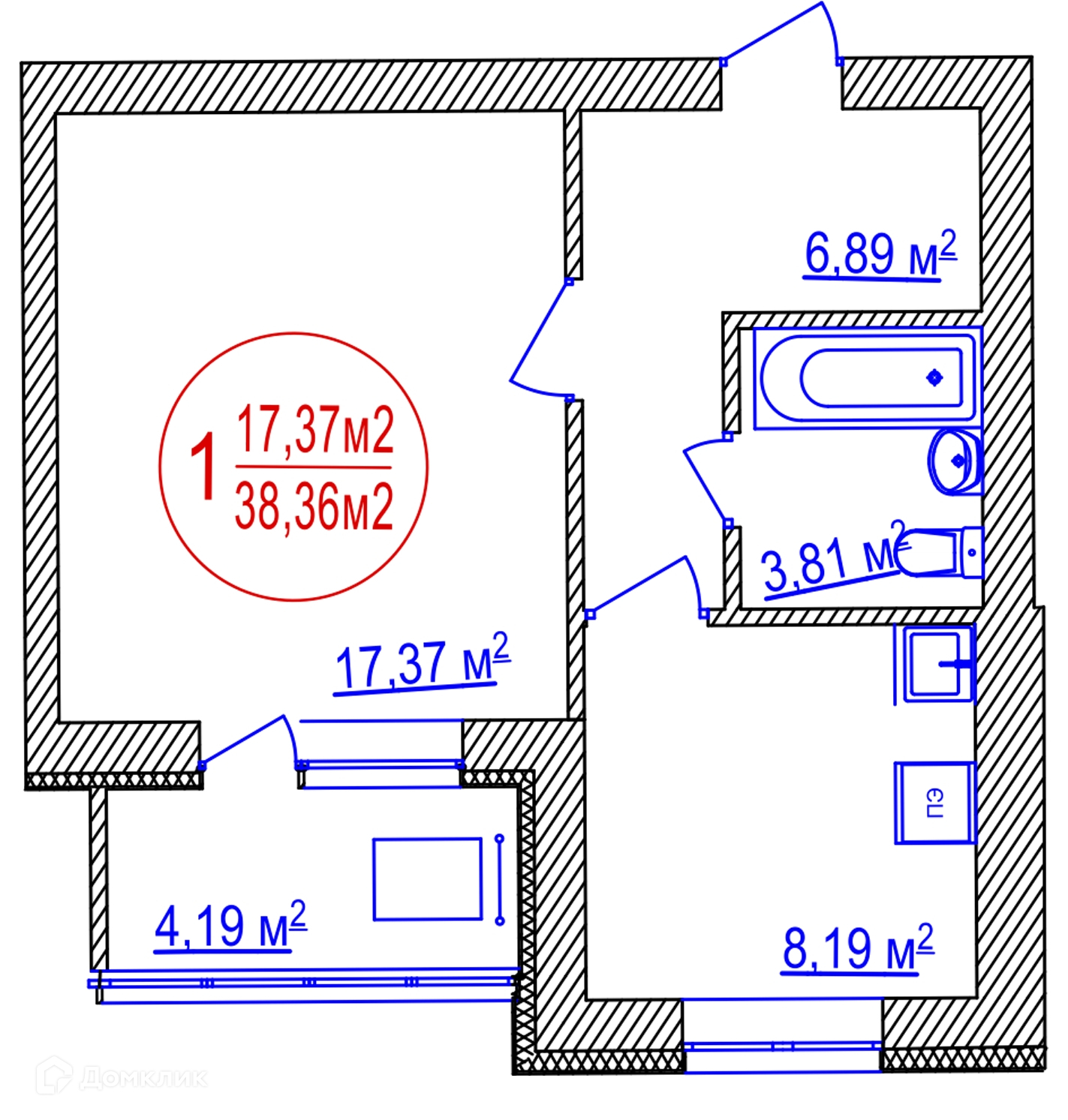 Общая площадь 38.36 м2