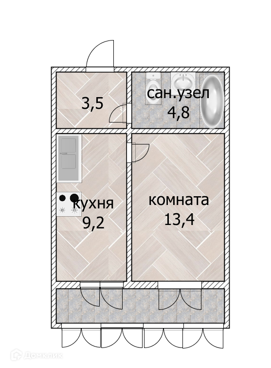 Общая площадь 33.6 м2