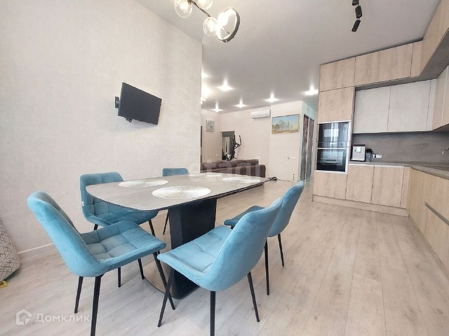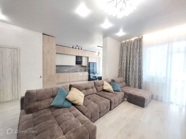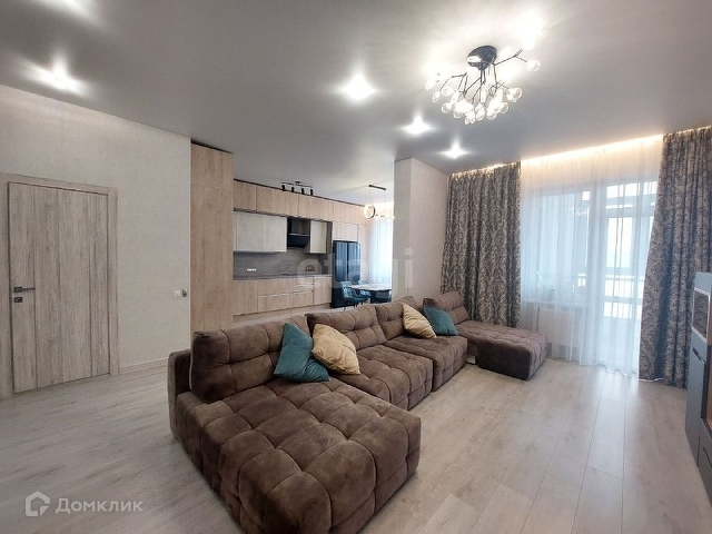 Большая кухня совмещенная с гостиной комнатой.