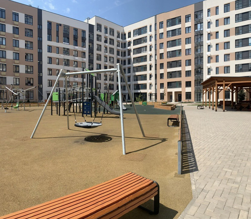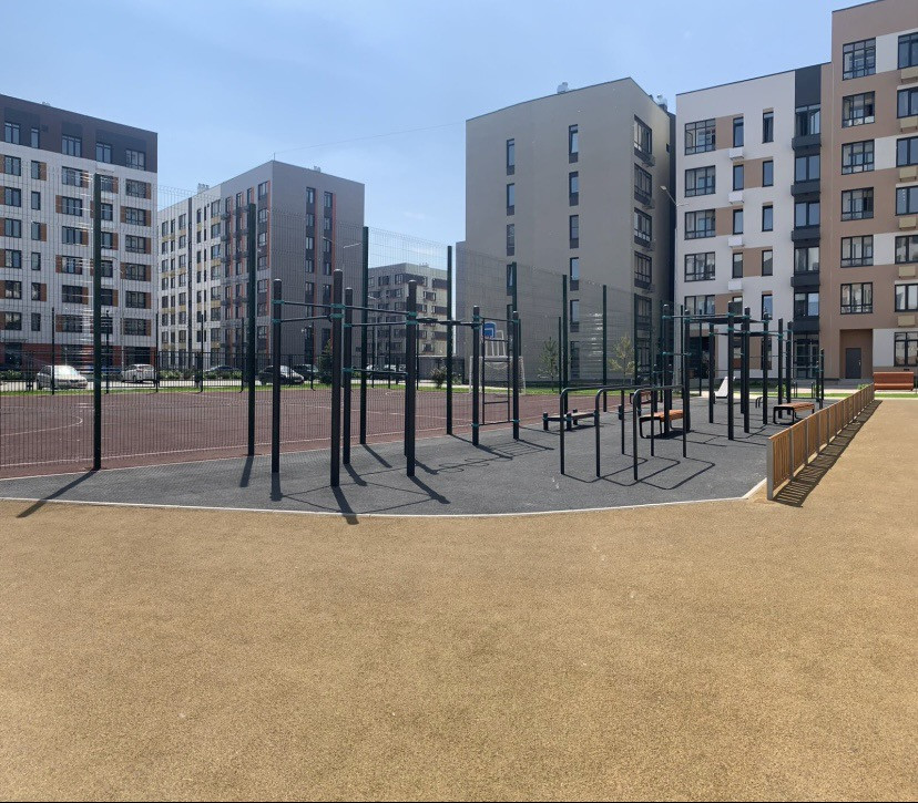 Безопасный двор с детской и спортивной площадками.