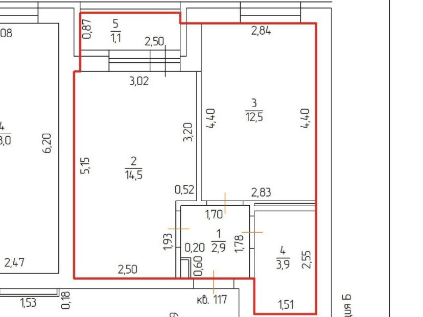 Жилая площадь 14.5 м2