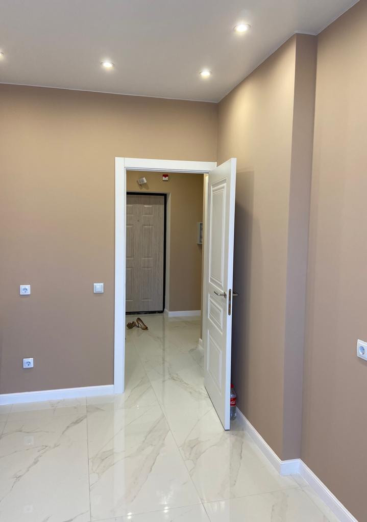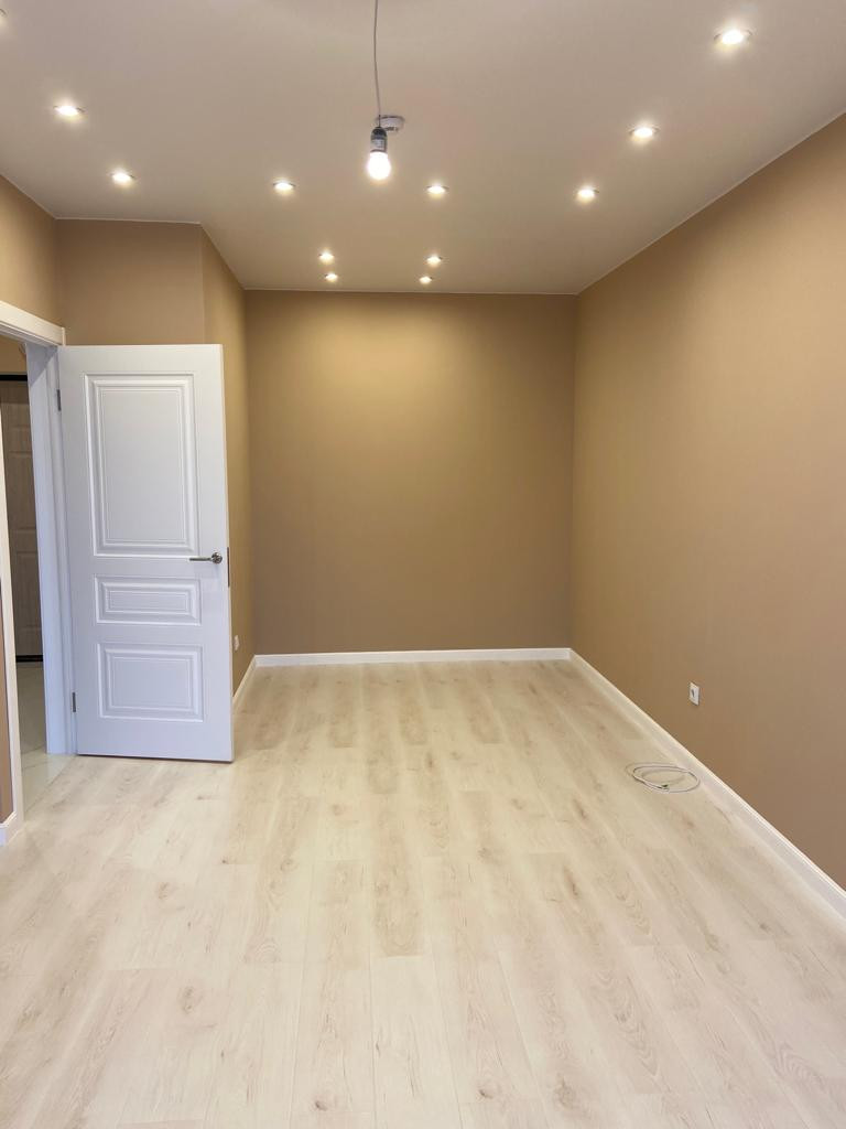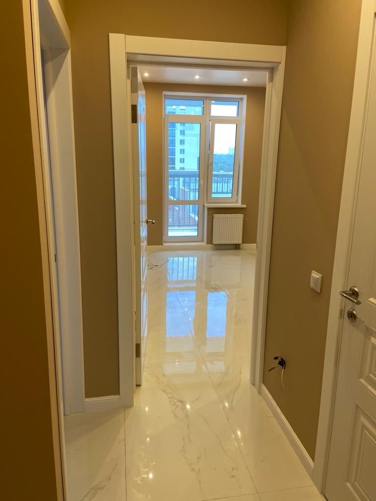 Квартира с евроремонтом : керамогранит (прихожая-кухня-ванная), ламинат комната, натяжной матовый потолок , точечные светильники , белые межкомнатные двери, входная металлическая дверь , окна пластиковые 2-х камерные .