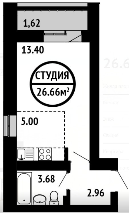 Общая площадь 26.7 м2