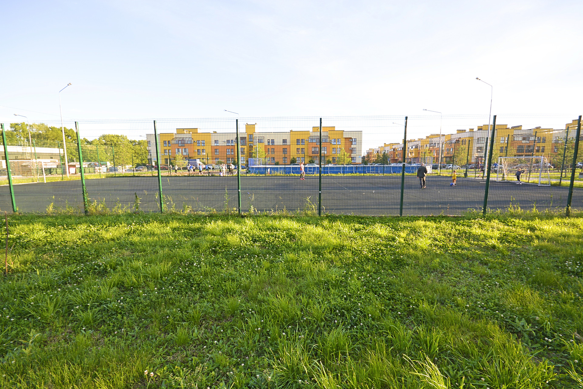 - Собственная территория с огромными детскими площадками, площадкой с мягкой кровлей для футбола, хоккея, волейбола, баскетбола, площадки для катания на самокатах и скейтах (скейт-парк), велосипедные дорожки, зона для фитнеса. Газон. Ландшафтный дизайн.