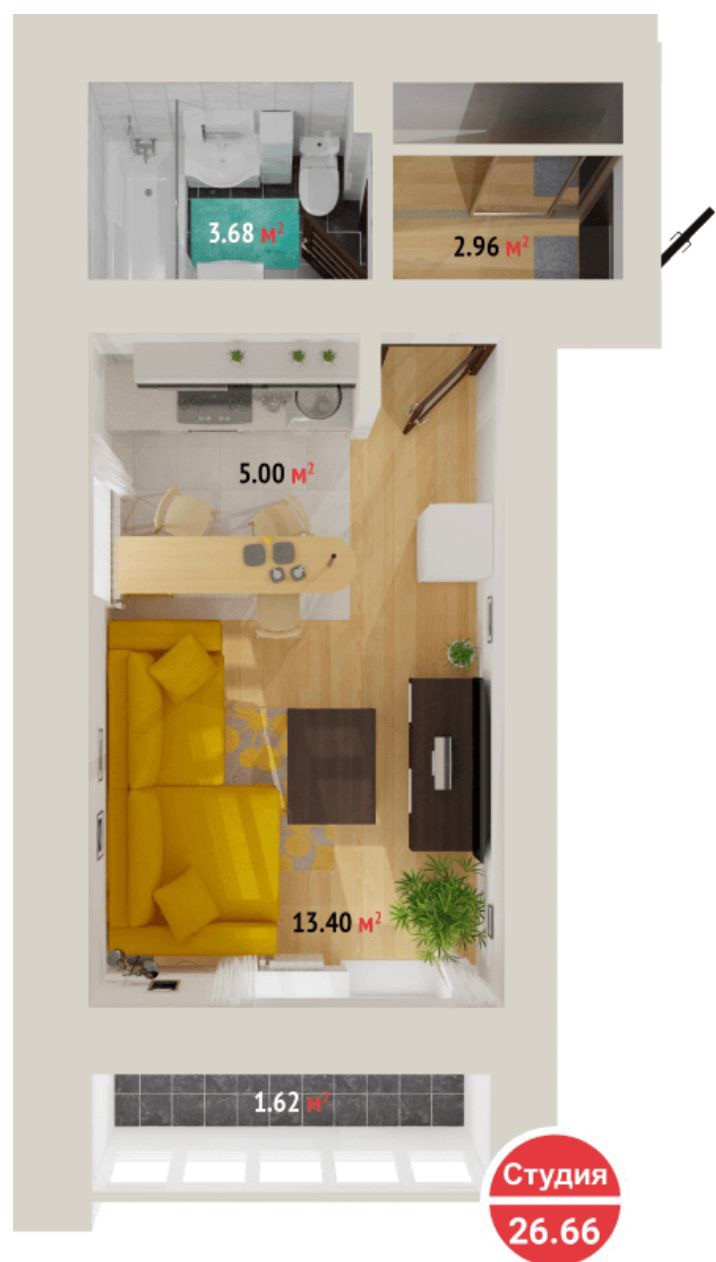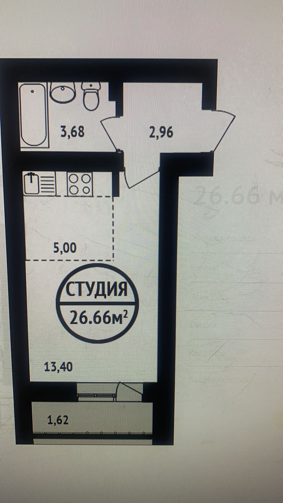 Общая площадь 26.6 м2