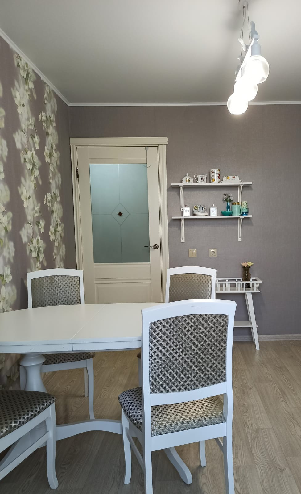 Отличное состояние: качественные обои, натяжной потолок, на полу постелен ламинат. В санузле выложена плитка, новая сантехника, хорошая входная дверь, ухожен.лоджия.