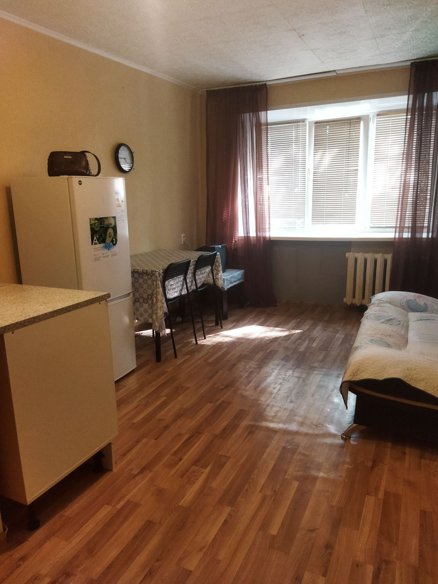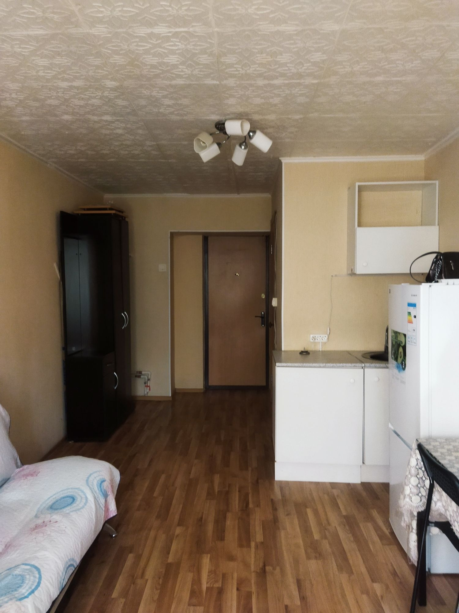 По адресу: Уфа Проспект Октября 56/1, продается на втором этаже в пятиэтажном кирпичном доме, однокомнатная студия ( со своим санузлом внутри),в бывшем общежитии коридорного типа. Остановка "Спортивная". свежий косметический ремонт, пластиковое окно, установлен кухонный гарнитур,  раковина. остаётся вся мебель и техника в хорошем состоянии.