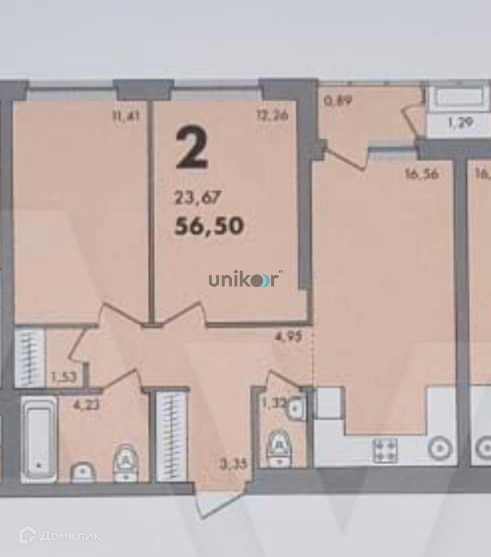 Общая площадь 57 м2