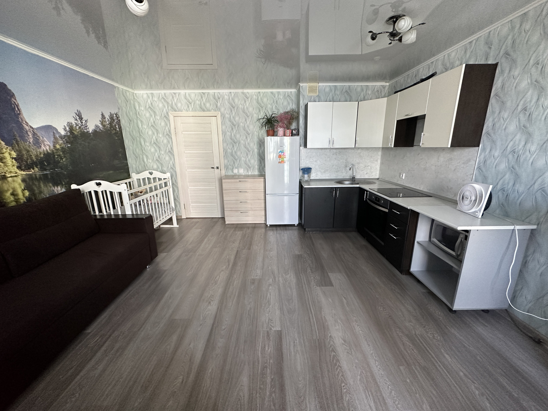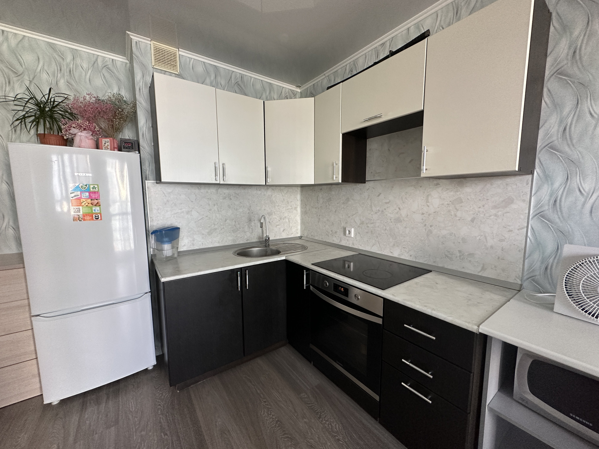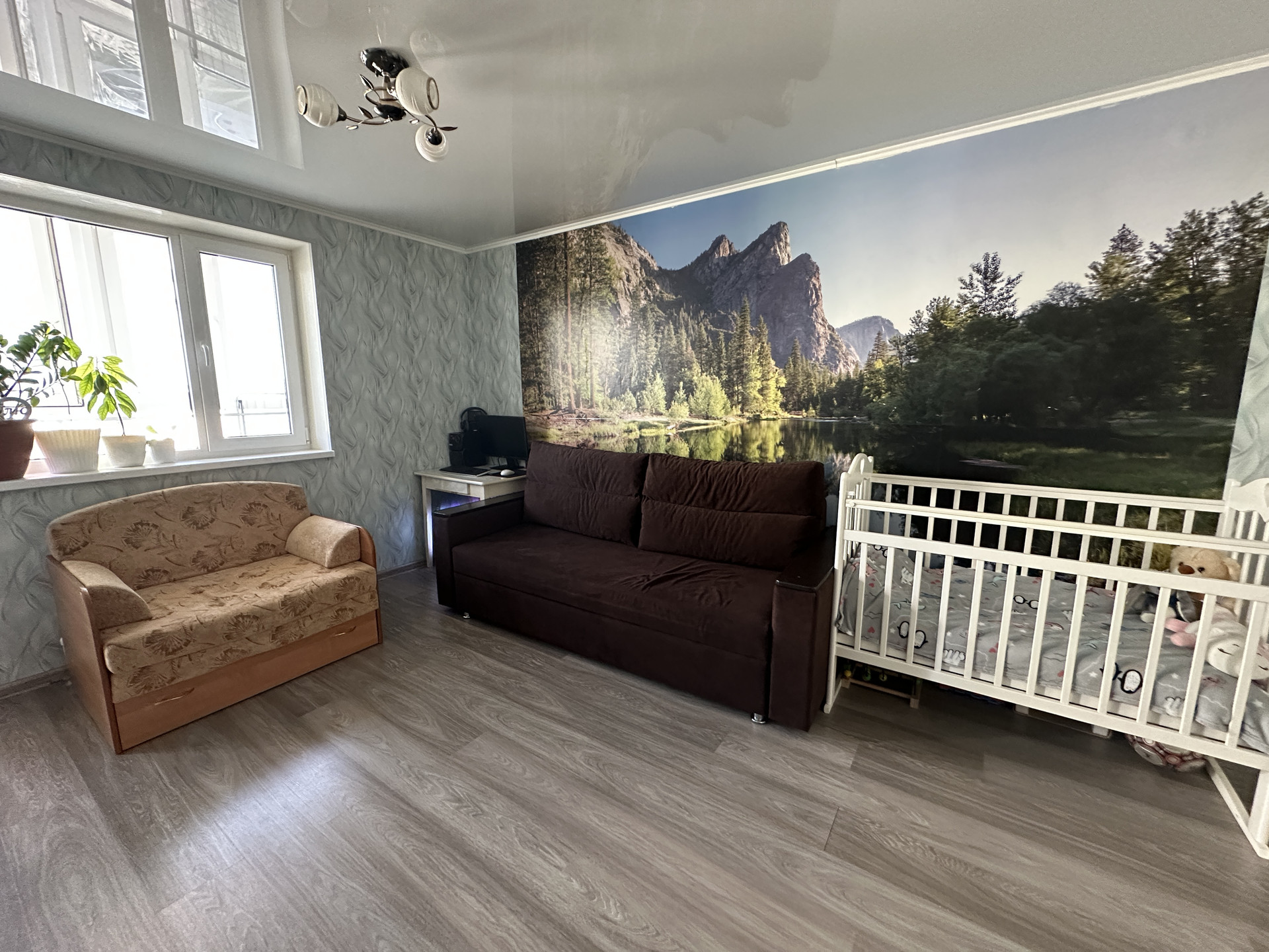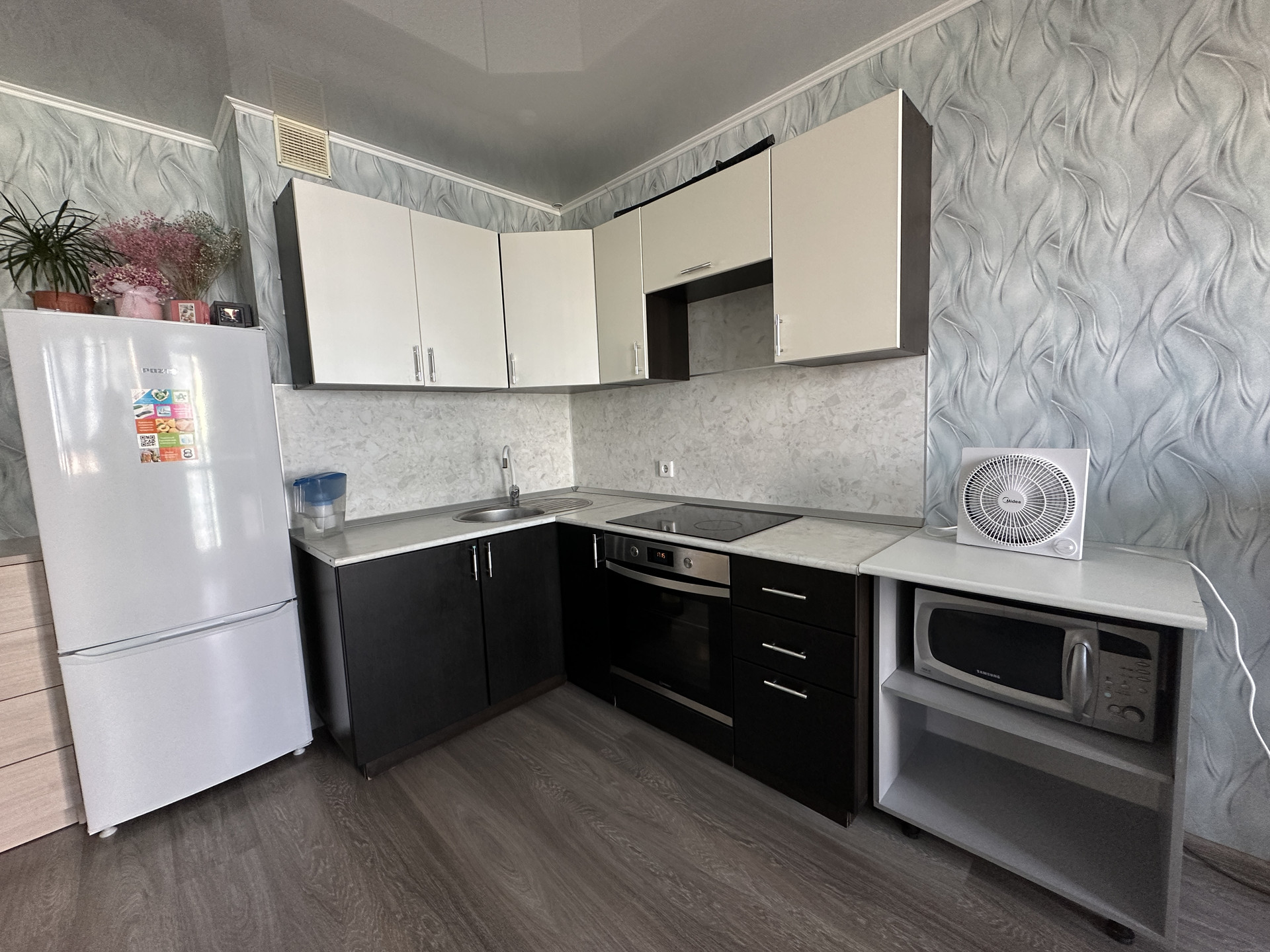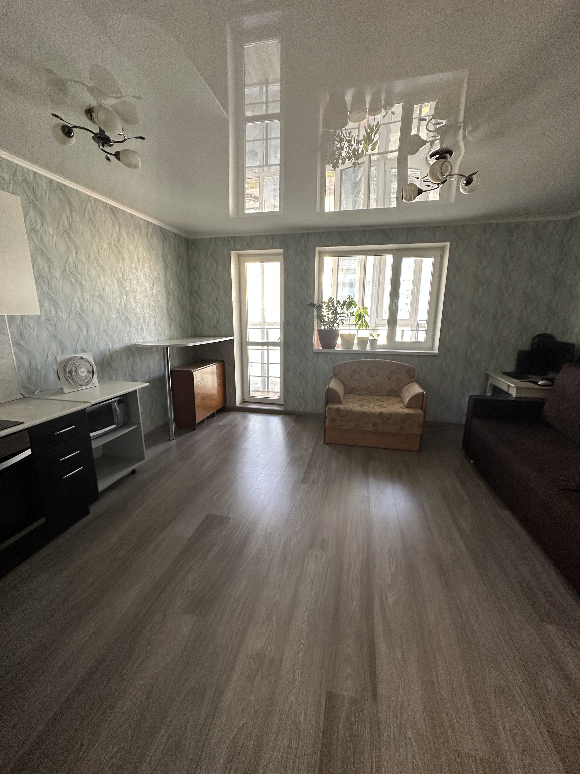 Состояние: сделан ремонт в квартире, ламинат, натяжные потолки, пластиковые окна, в санузле плитка, кухонный гарнитур, варочная поверхность, духовой шкаф, шкаф в коридоре.