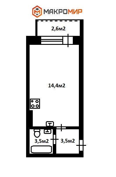 Балкон, лоджия 1 балкон