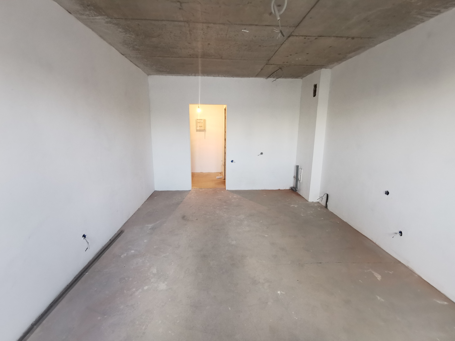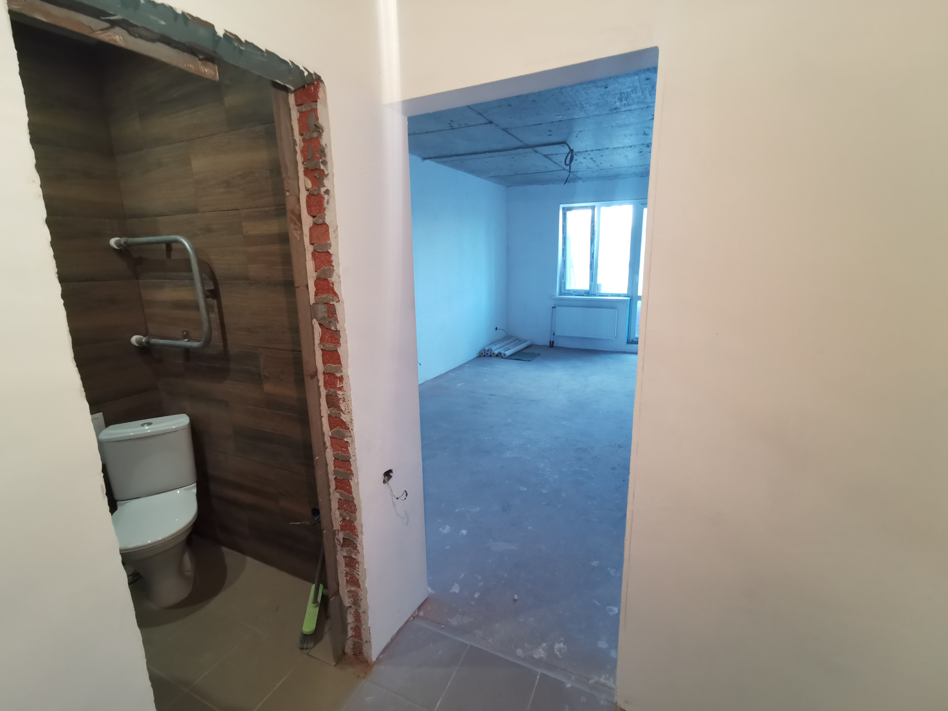- В квартире выполнен частичный ремонт: санузел в керамограните, установлена ванна, унитаз, сантехника, выполнена разводка под стиральную машину и раковину. В комнате также выведены все коммуникации, стены и полы готовы под финишную отделку по желанию покупателя. Электрика разведена. Куплены обои.