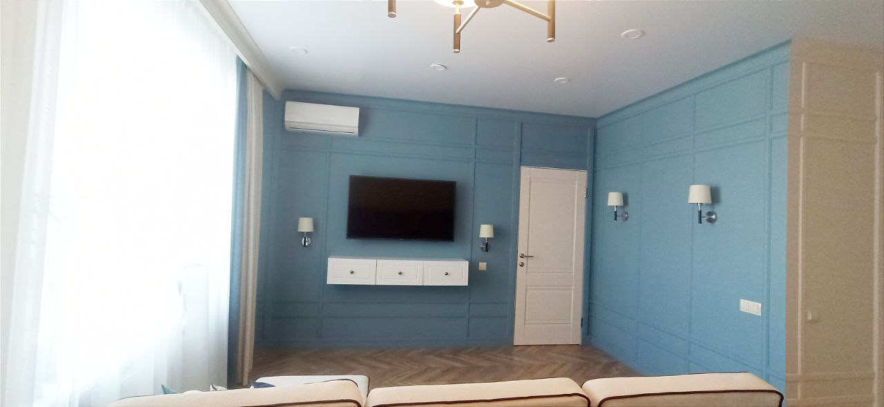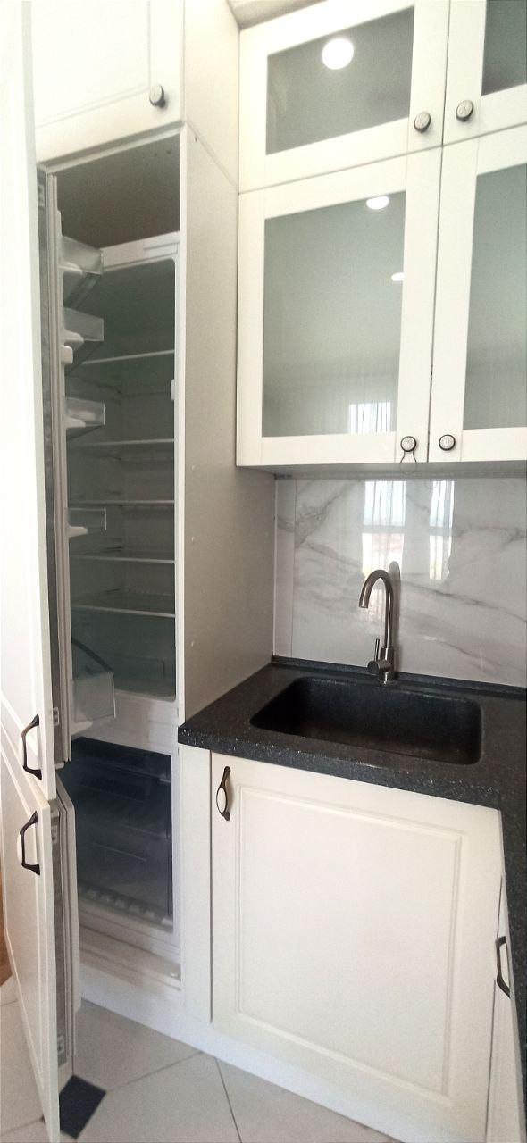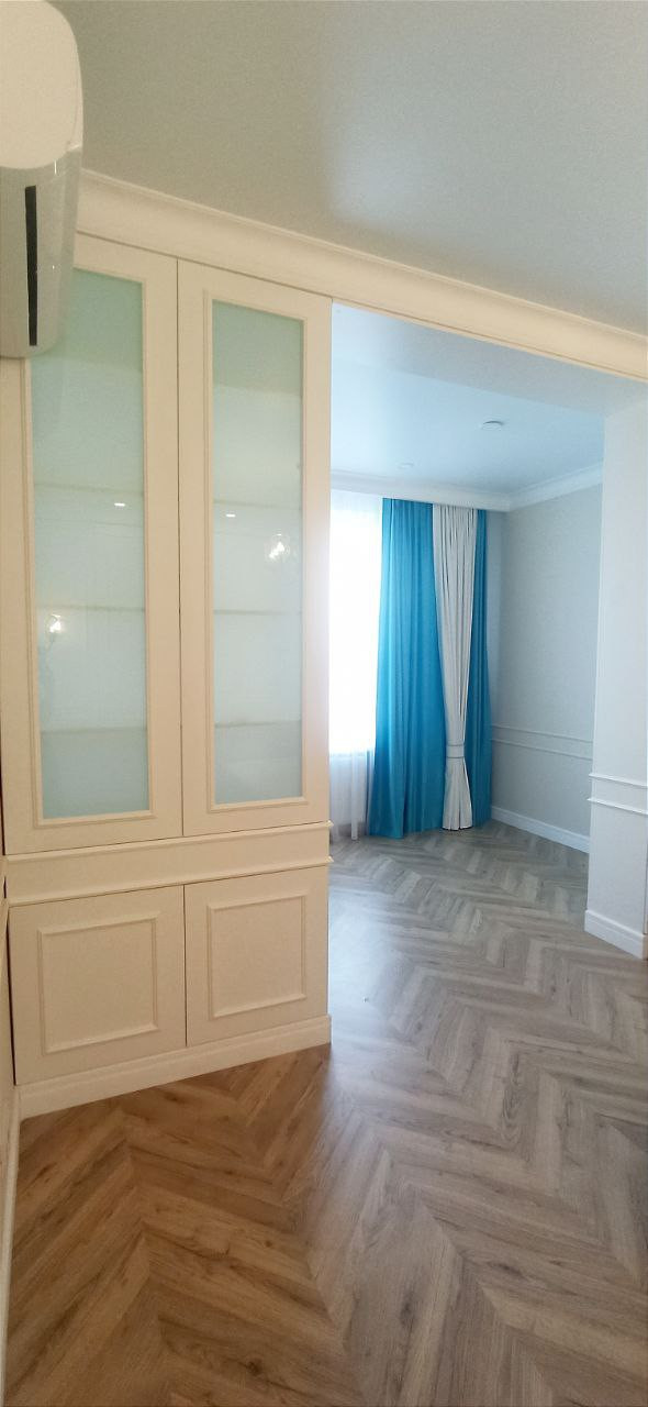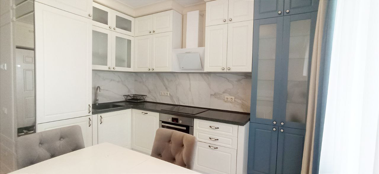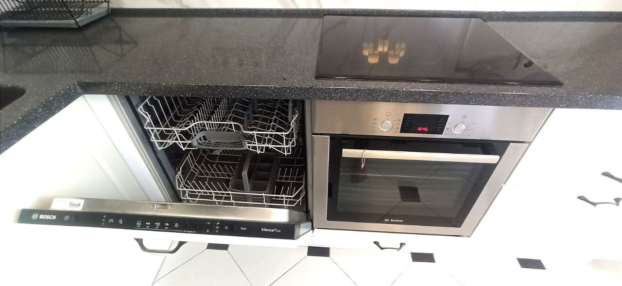 Кухня укомплектована встраиваемой техникой: варочная панель (индукция), духовой шкаф, посудомоечная машина, встроенный холодильник, вытяжка. Также остаются 2 кондиционера, ЖК телевизор, стиральная машина и вся мебель, представленная на фотографиях.