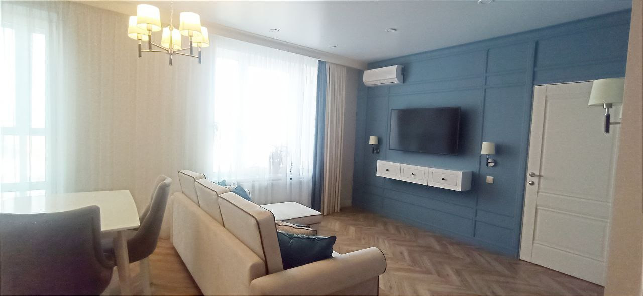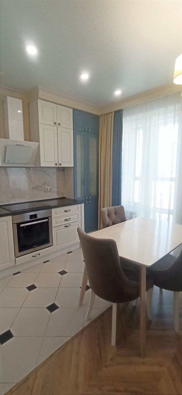Удачная планировка, которая позволяет рационально использовать пространство. Светлая кухня-гостиная 26,2 кв.м, жилая площадь 26,2 кв.м, санузел 4,2 кв.м, просторная гардеробная 4,1 кв.м, широкая лоджия с панорамным остеклением. Выполнен качественный современный ремонт. Квартира в состоянии "Заезжай и живи".