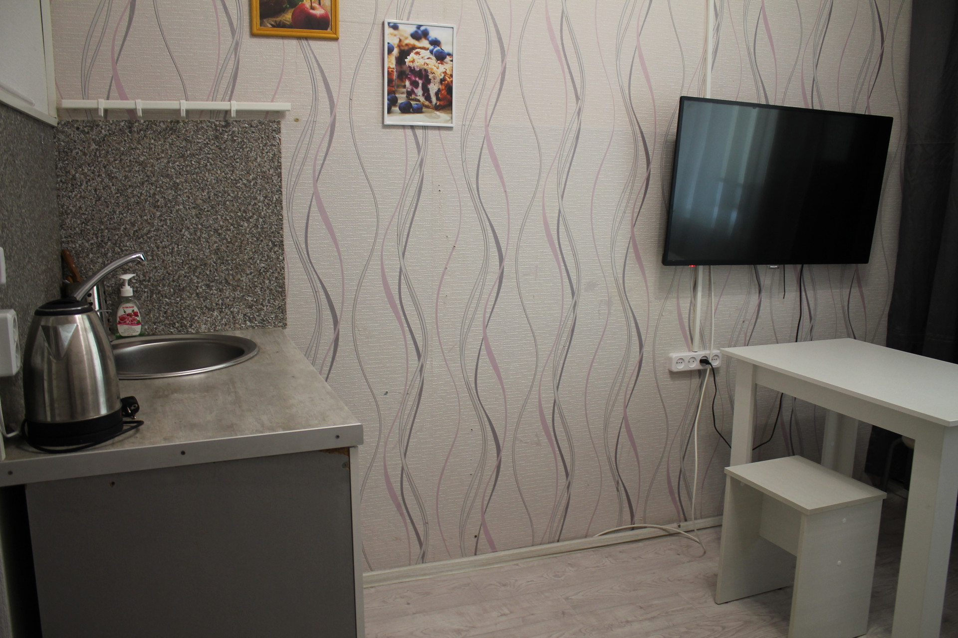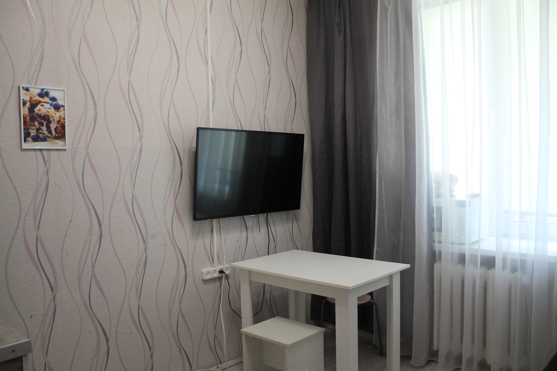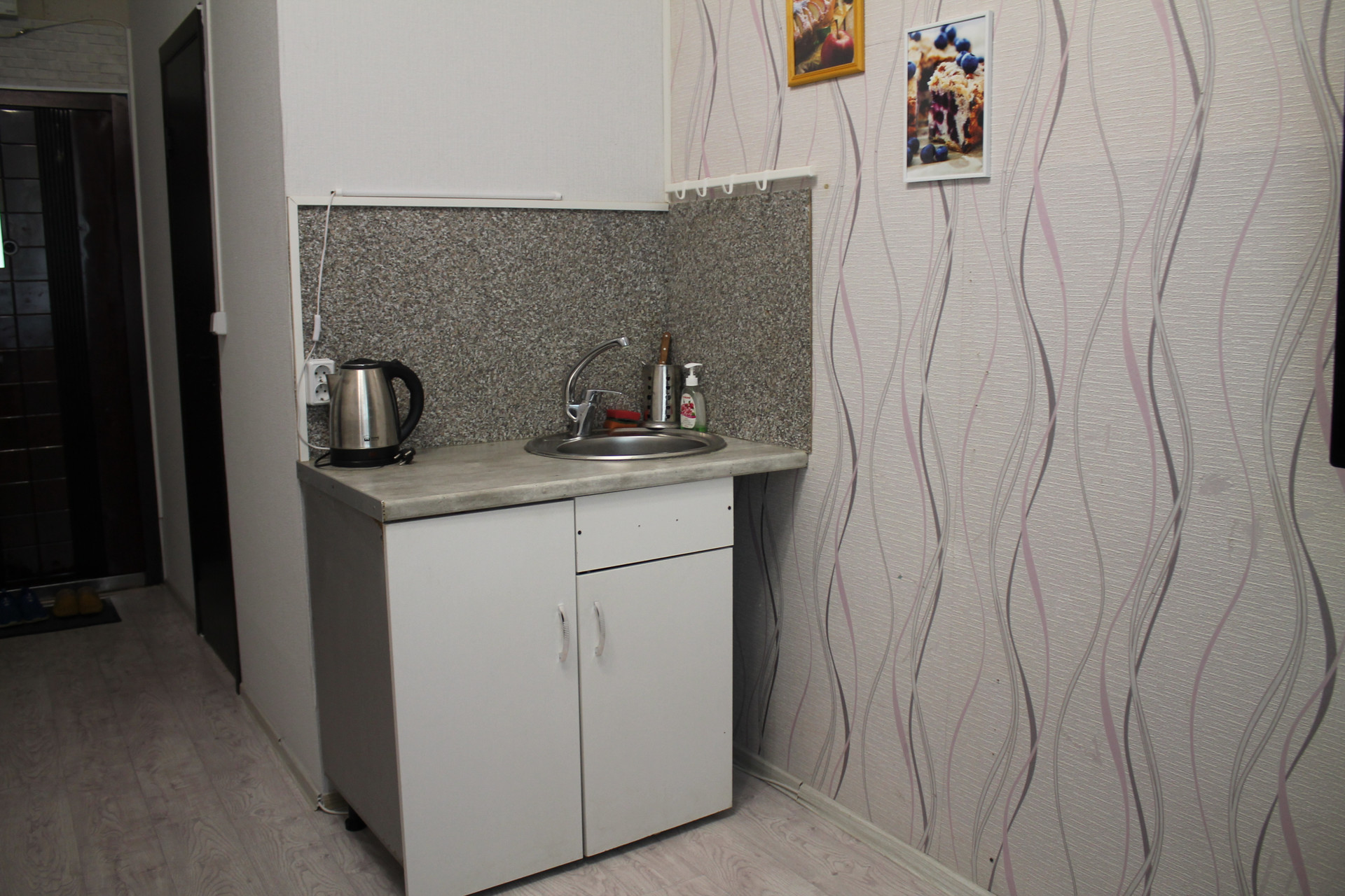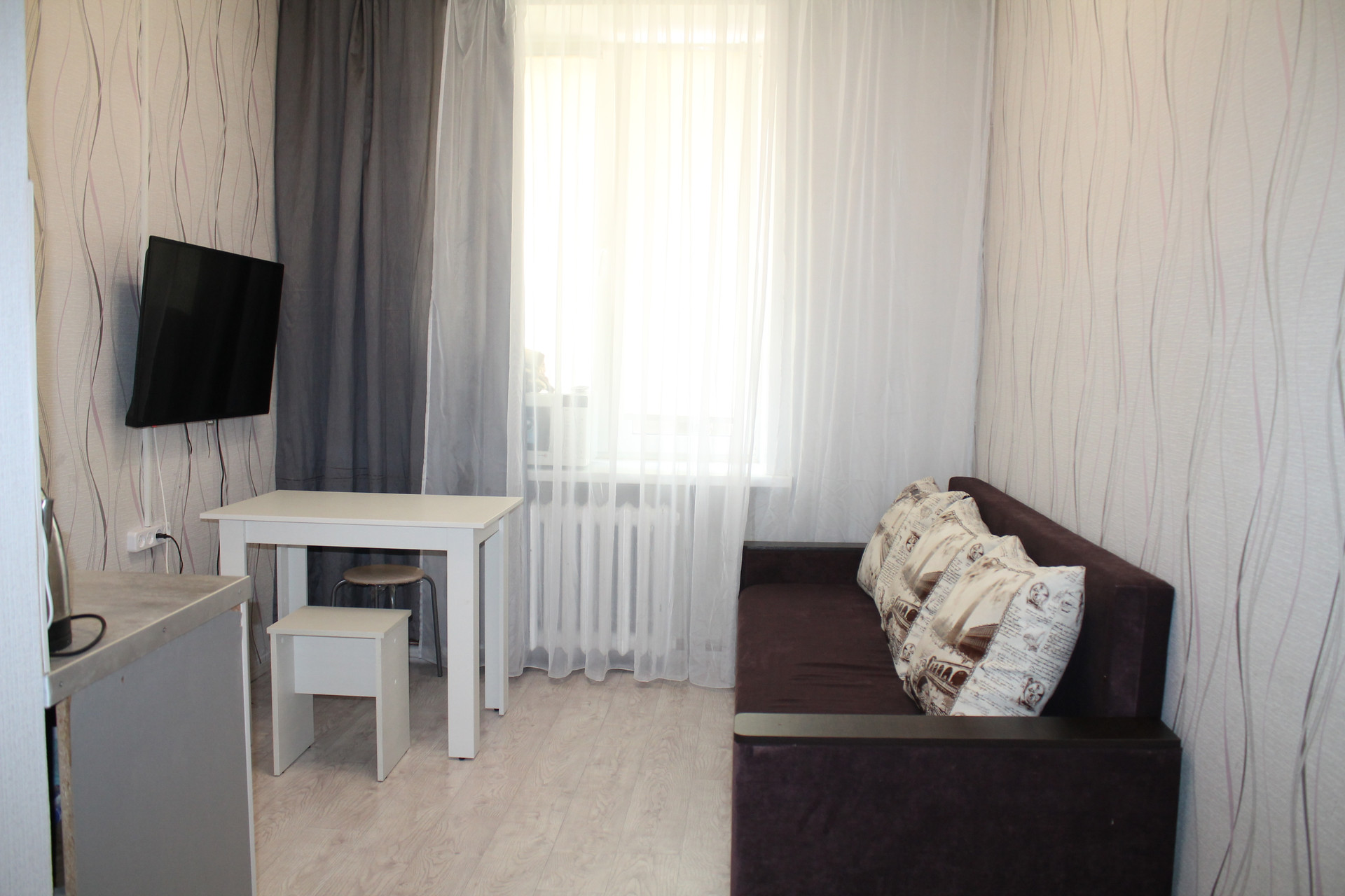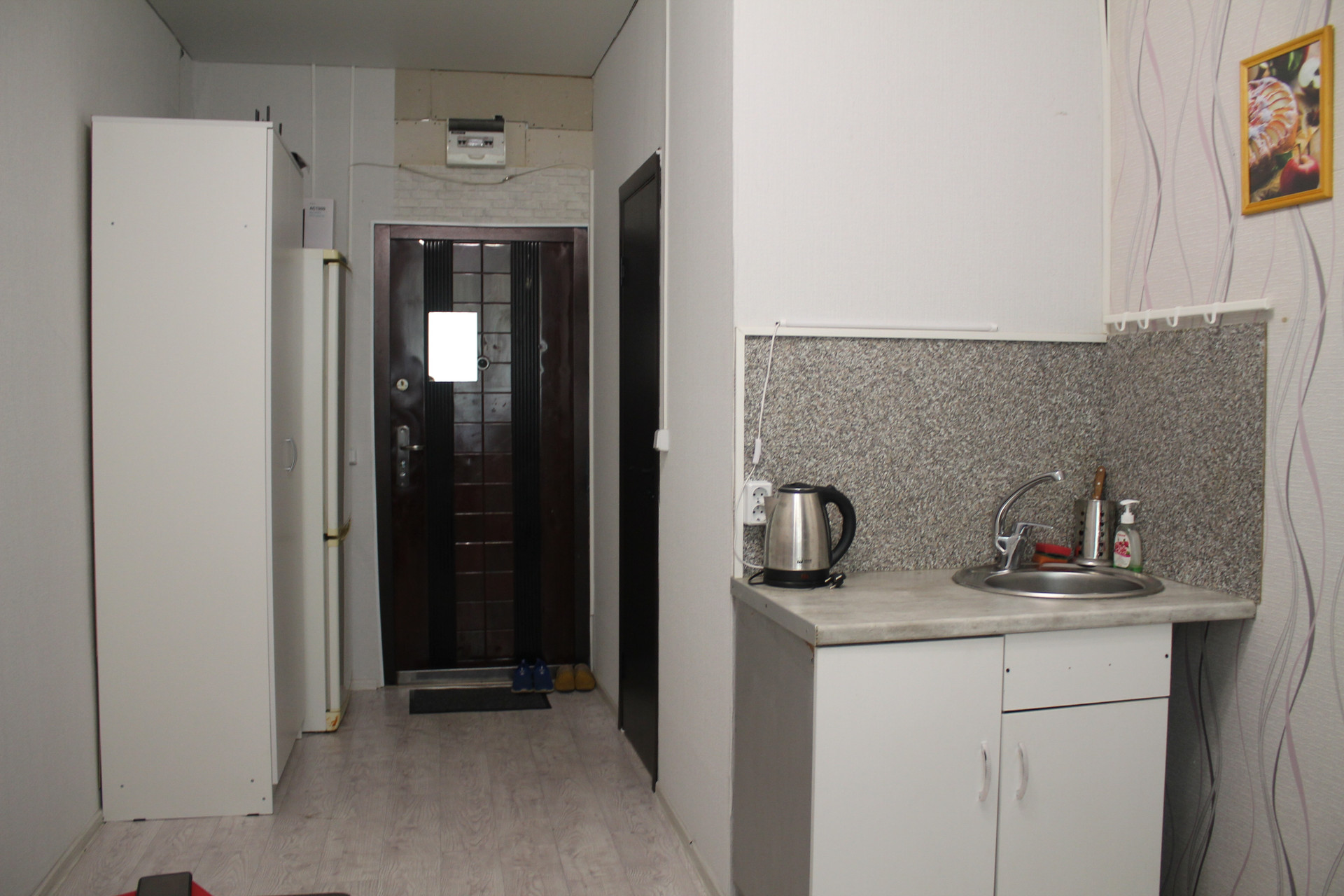 СОСТОЯНИЕ: отличная тёплая квартира с приятным ремонтом - заезжай и живи. В комнате на стенах обои хорошего качества, окна пластиковые. Комнату поделили на две зоны - кухня и жилая. В жилой части комнаты - диван, шкафы для вещей. Санузел совмещенный, установлен унитаз, душевая кабинка, стиральная машинка, сантехника новая. Установлен счетчик на электричество. Подъезд чистый и ухоженный, закрывается на ключ.