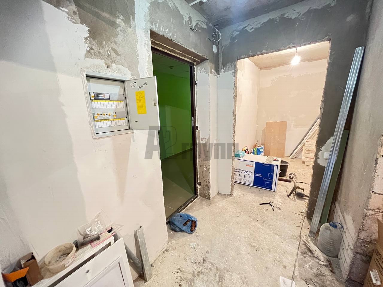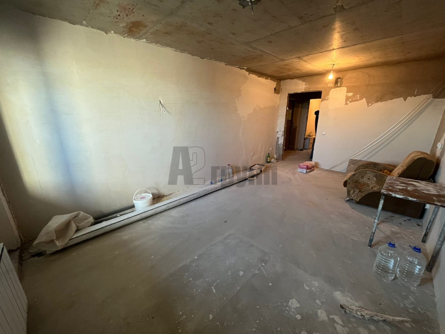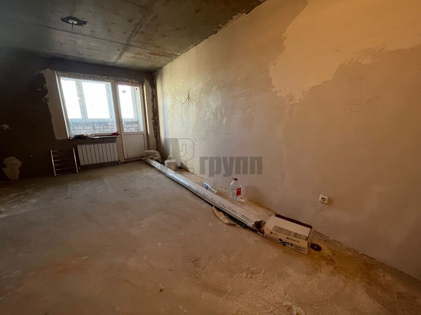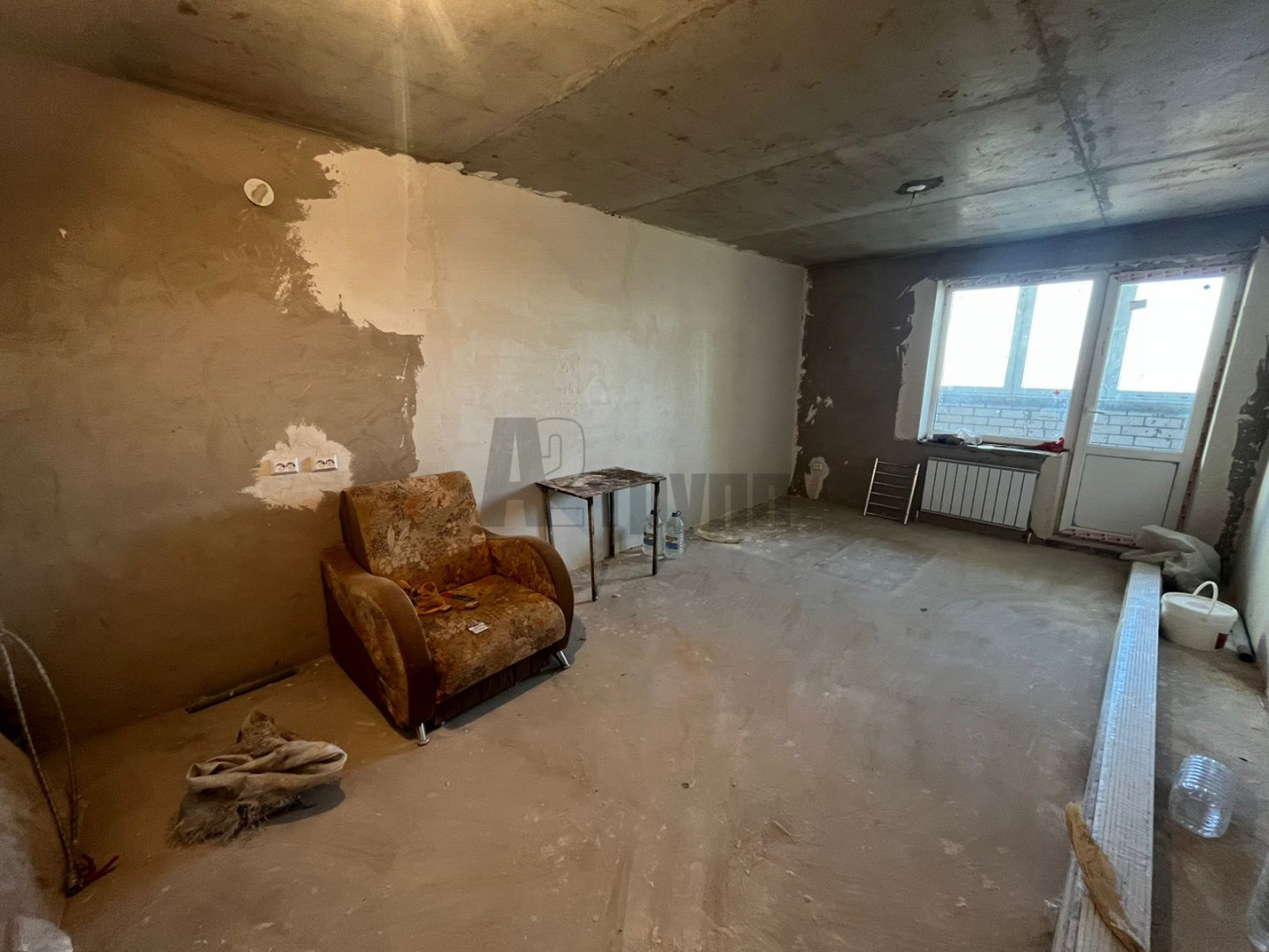 В квартире выполнена качественная предчистовая отделка: стены выровнены финишной штукатуркой под маяк, залиты и выравнены полы, сан узел в кафеле