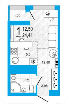 Общая площадь 24 м2