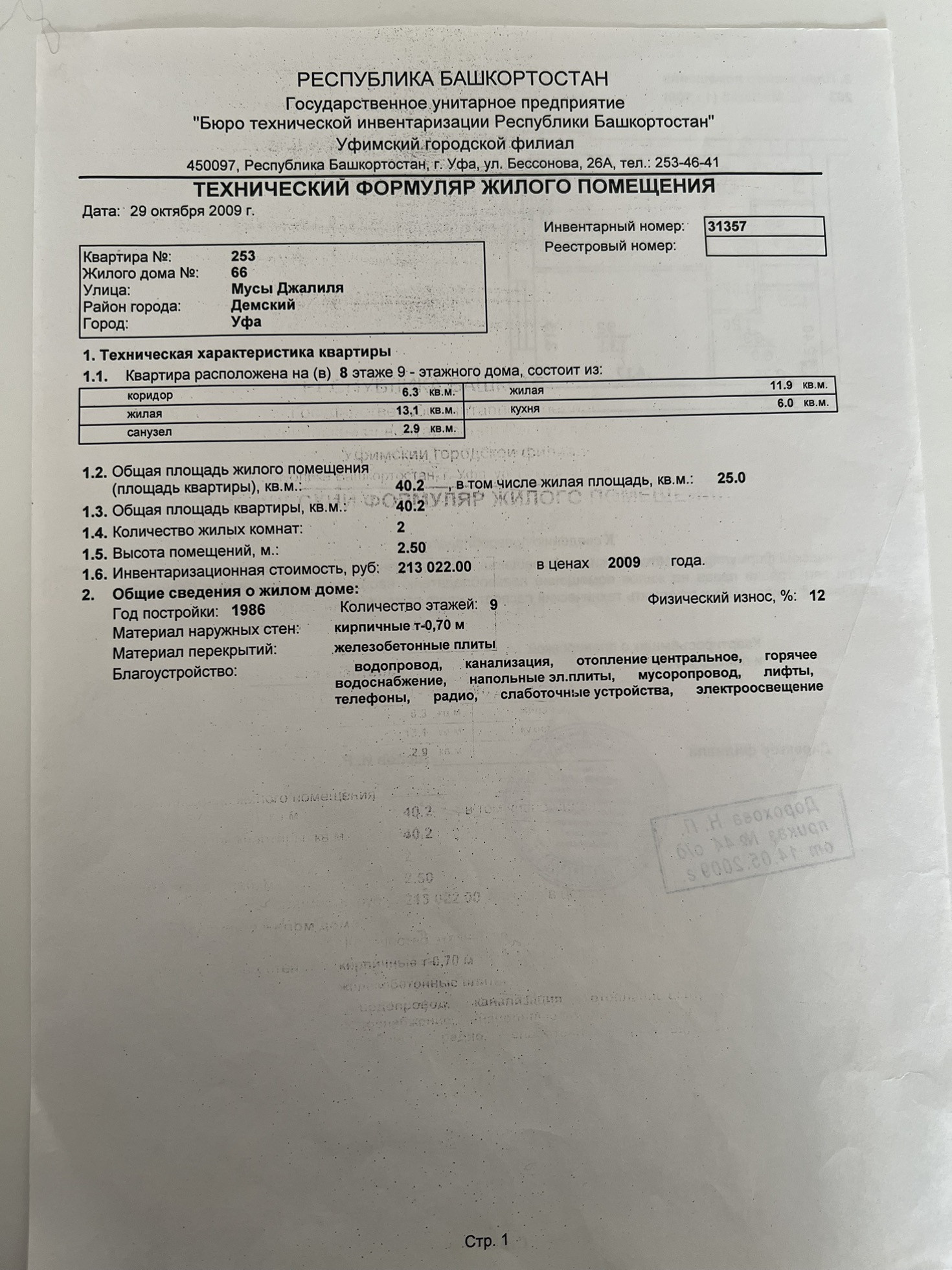 Стоимость недвижимости: