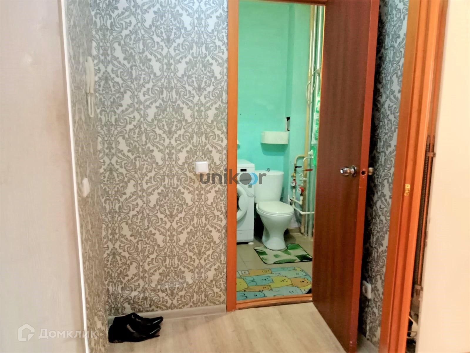Хорошие обои, на полу линолеум, вся сантехника в рабочем состоянии.