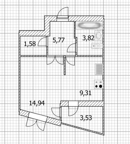 Жилая площадь 19.4 м2
