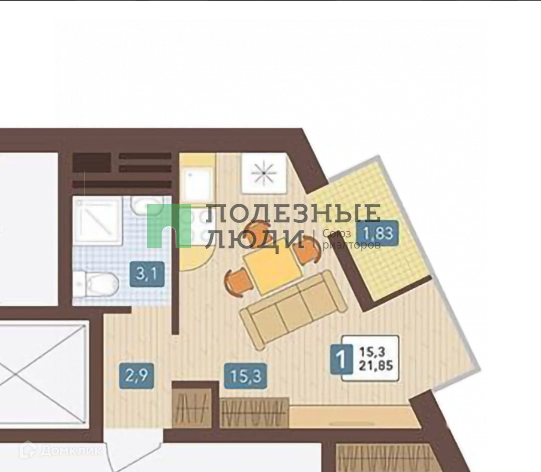 Общая площадь 21 м2
