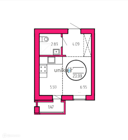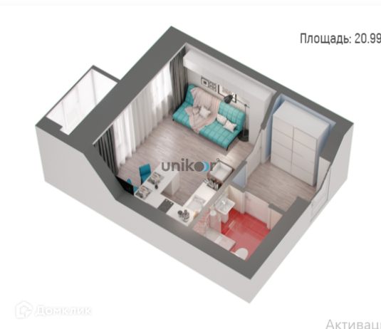 Общая площадь 21 м2