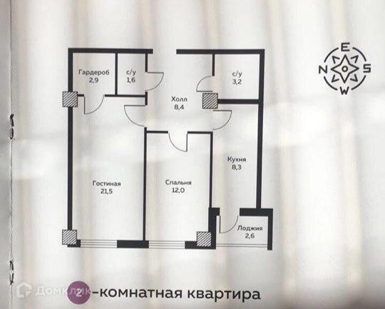 Общая площадь 54.7 м2