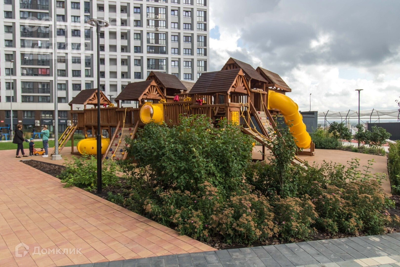 Закрытый двор, современные экологичные детские площадки, воркаут зона, все выполнено дорого, великолепный ландшафтный дизайн.