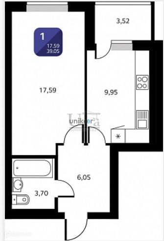Объявление №28116. Продается однокомнатная квартира на десятом этаже 25-ти этажного строящегося дома в ЖК «Черника» площадью 39,05 кв.м. ЖК расположен на пересечении ул.Пекинской и Кремлевской в Орджоникидзевском районе.