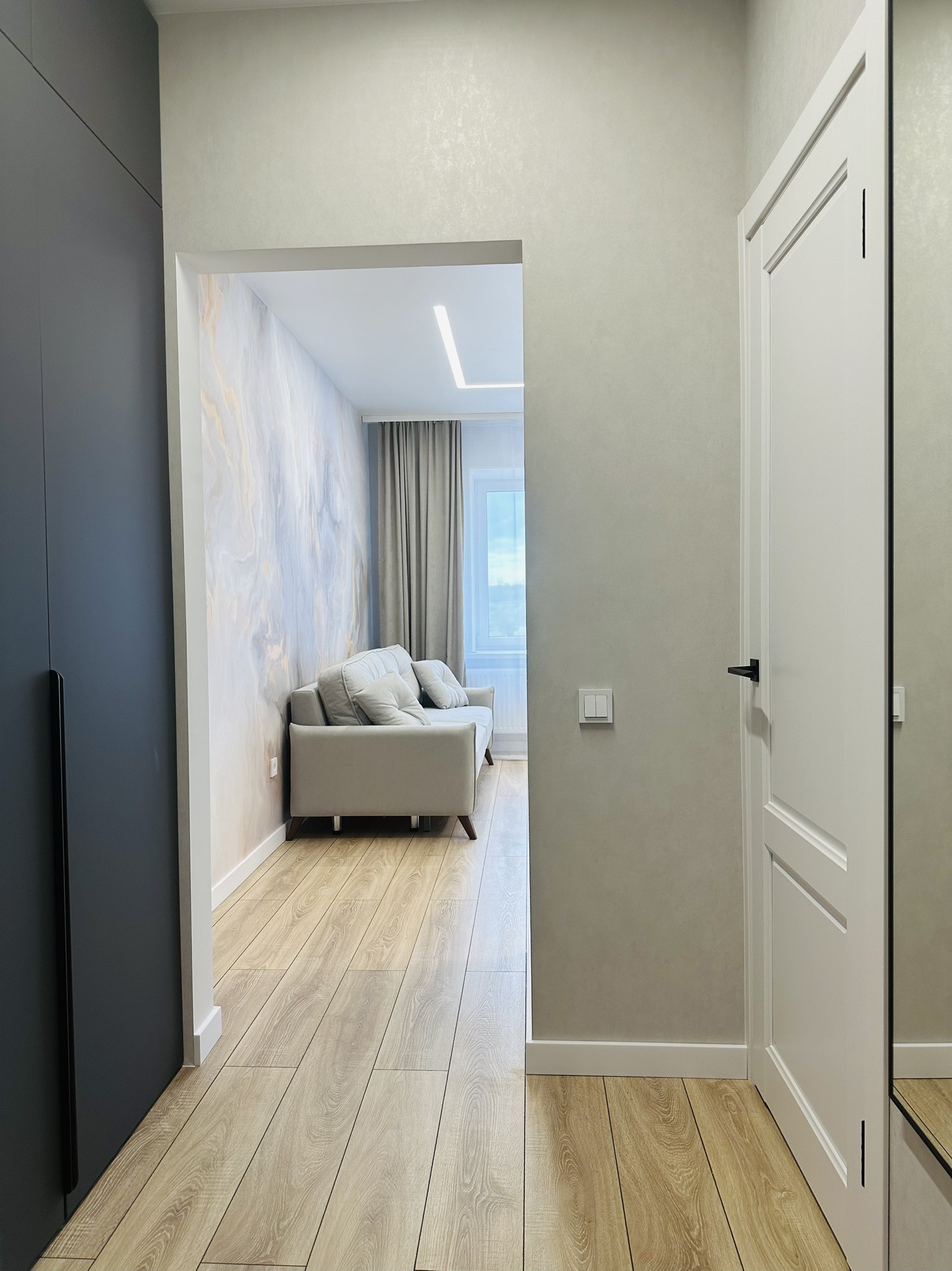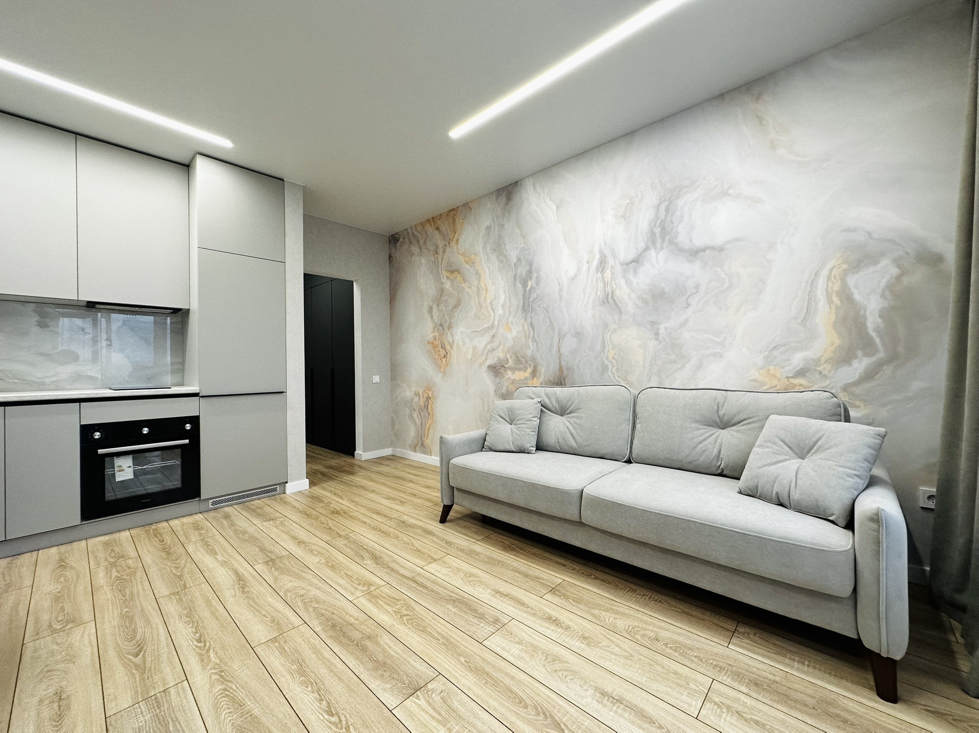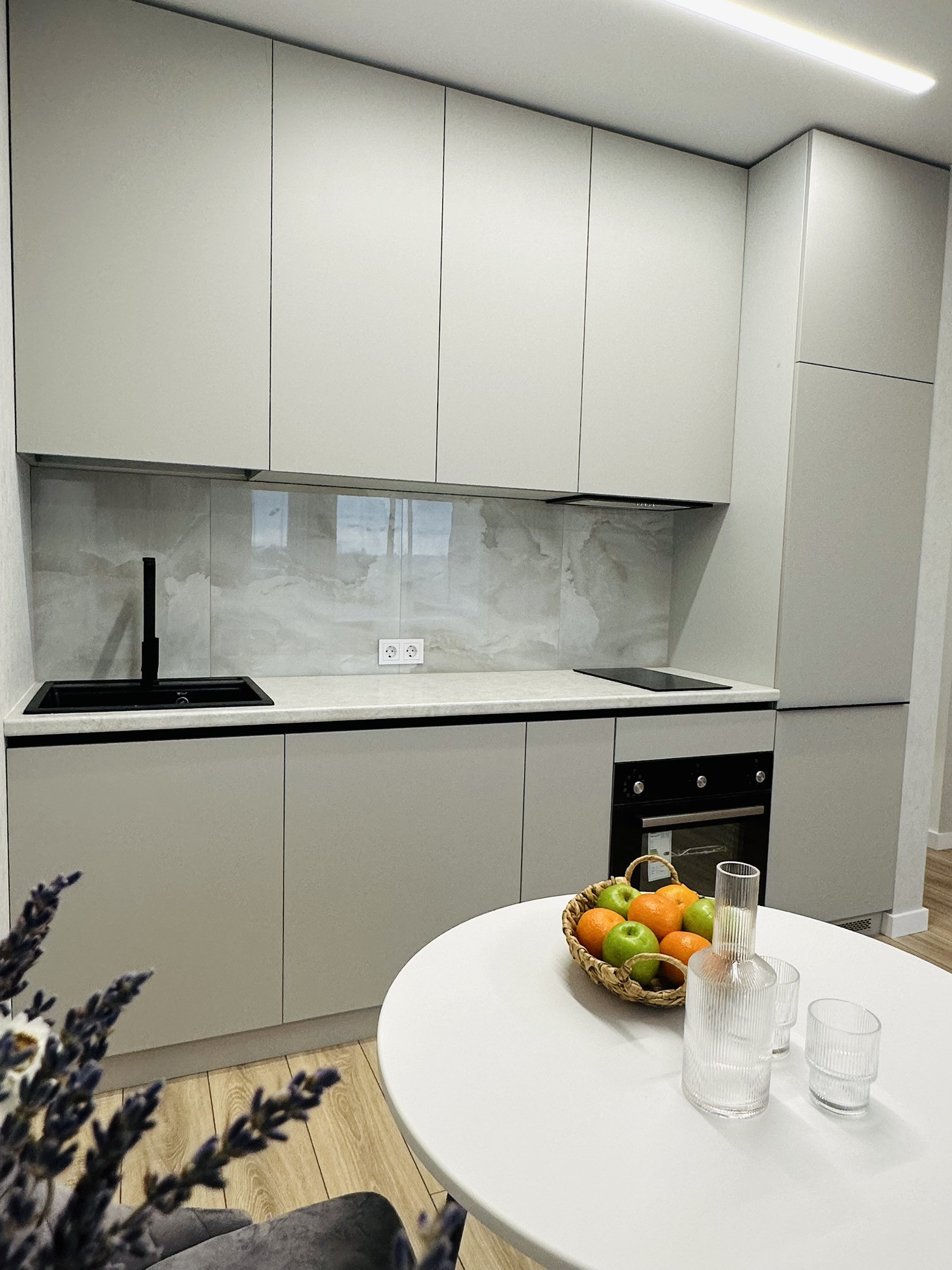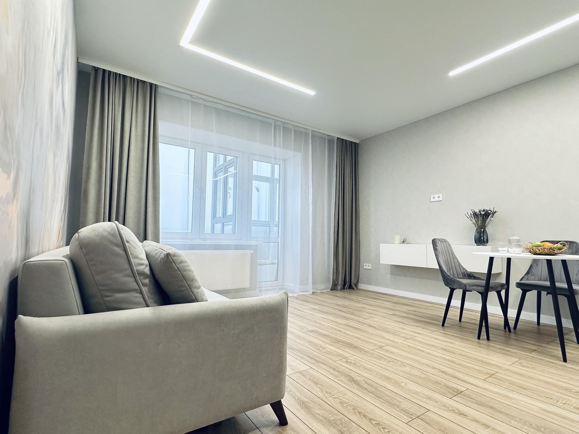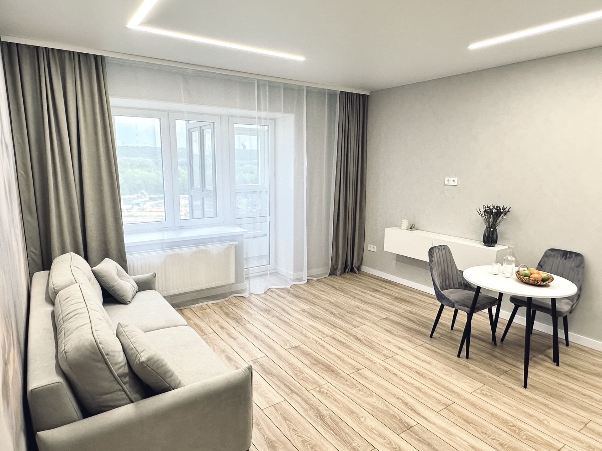 В квартире остаётся вся техника и мебель. Мебель вся делалась на заказ. В ванной комнате теплые полы, а также реализована теплая стена на место полотенцесущителя. Установлена инсталляция, тропический душ скрытого монтажа.