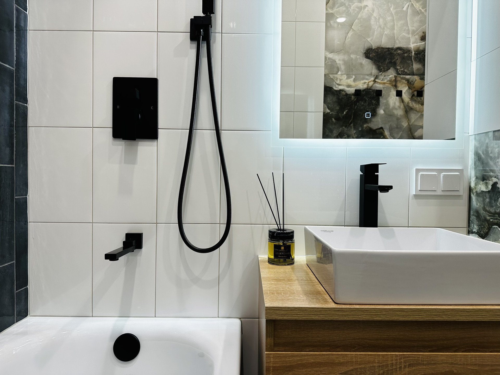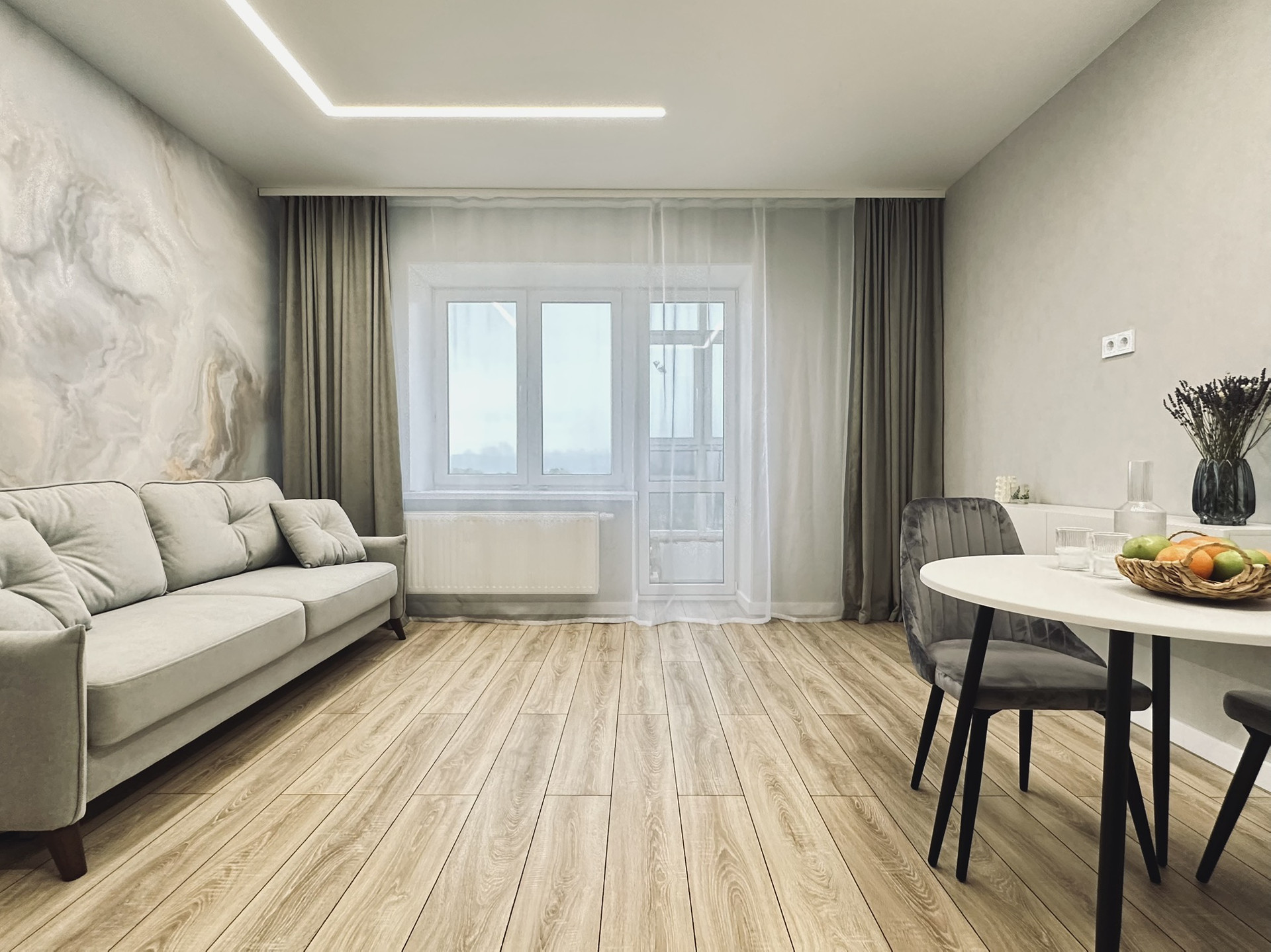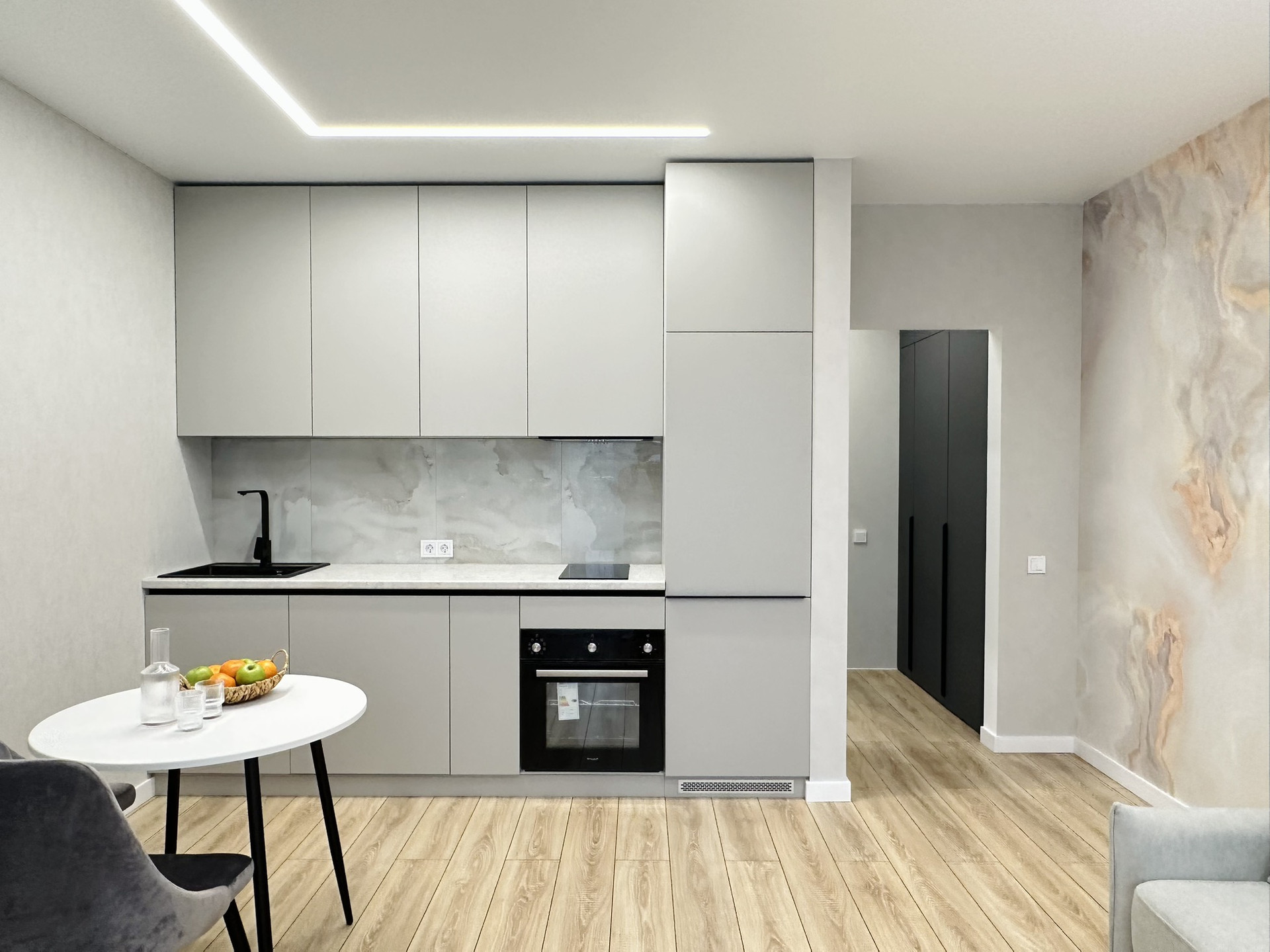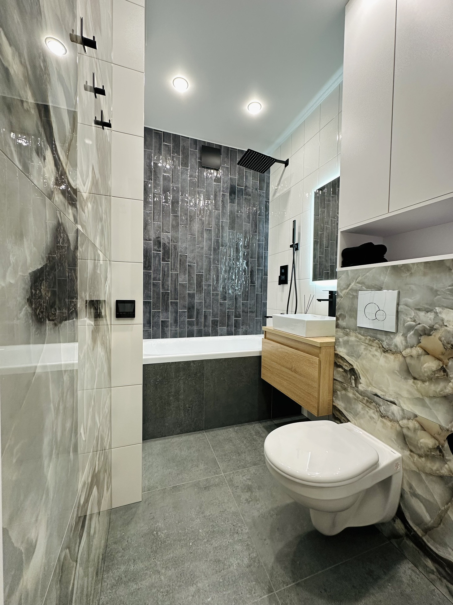 В квартире остаётся вся техника и мебель. Мебель вся делалась на заказ. В ванной комнате теплые полы, а также реализована теплая стена на место полотенцесущителя. Установлена инсталляция, тропический душ скрытого монтажа.