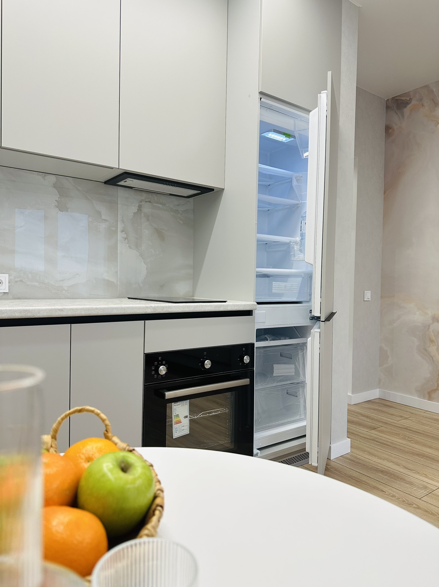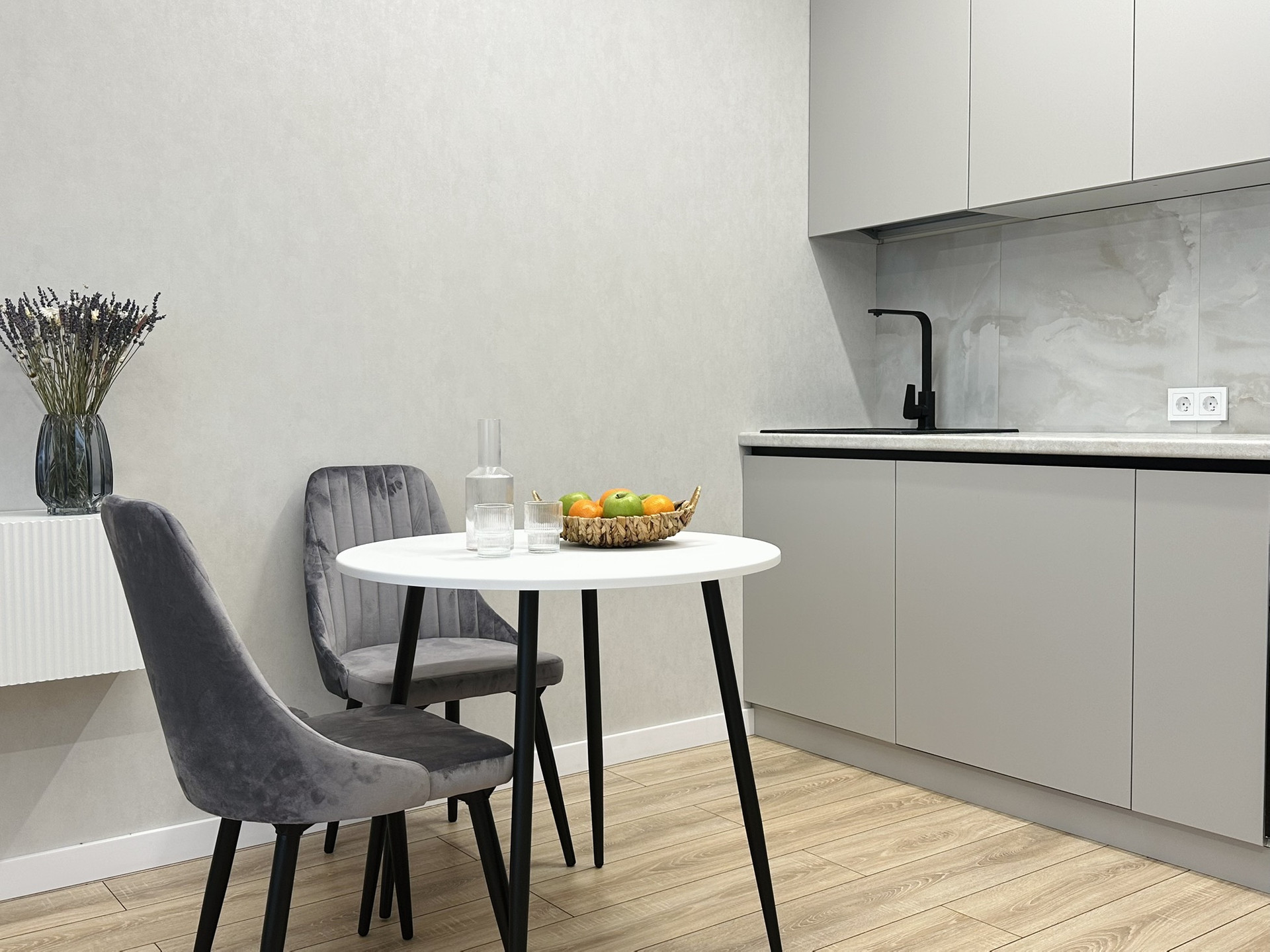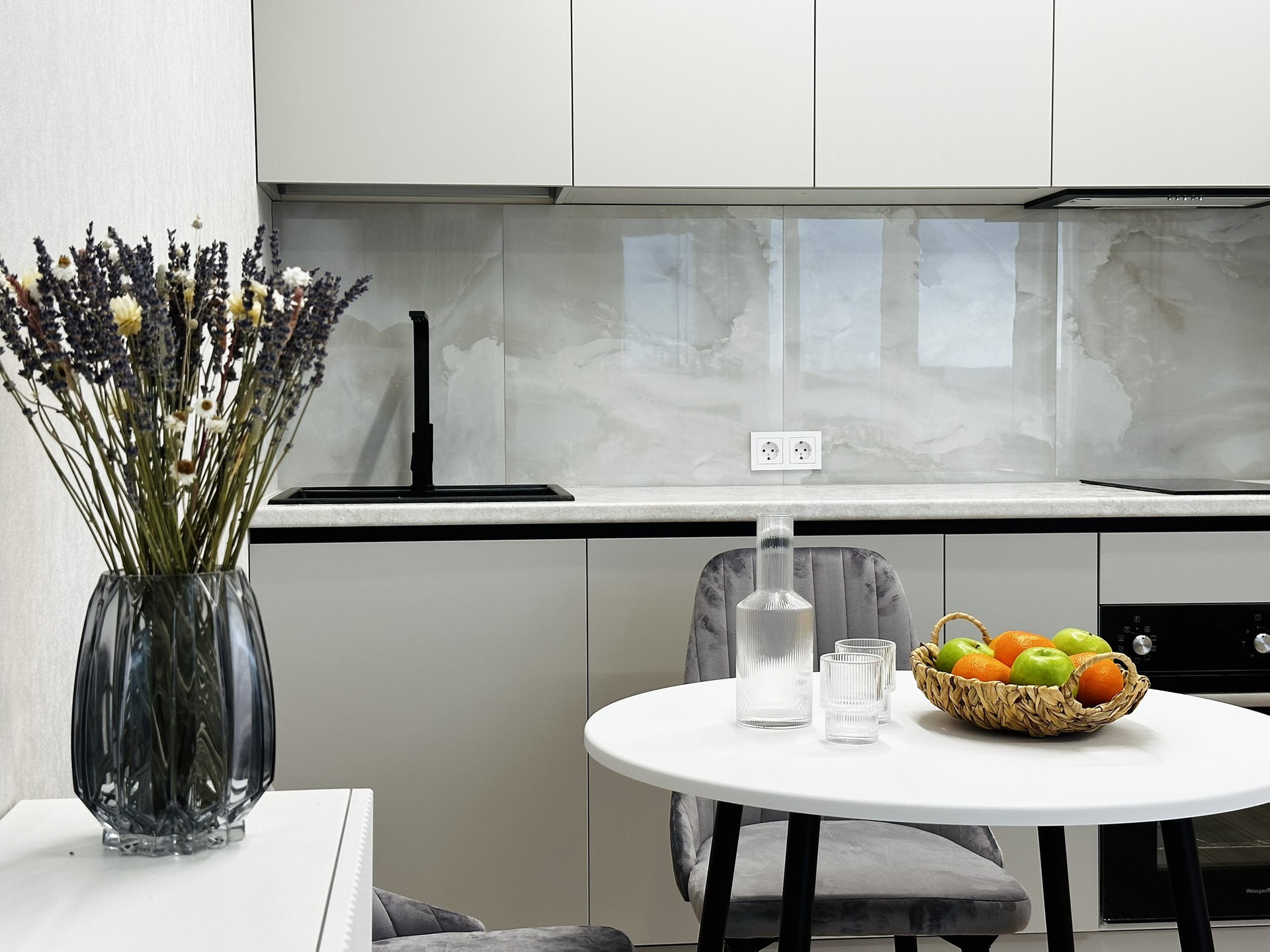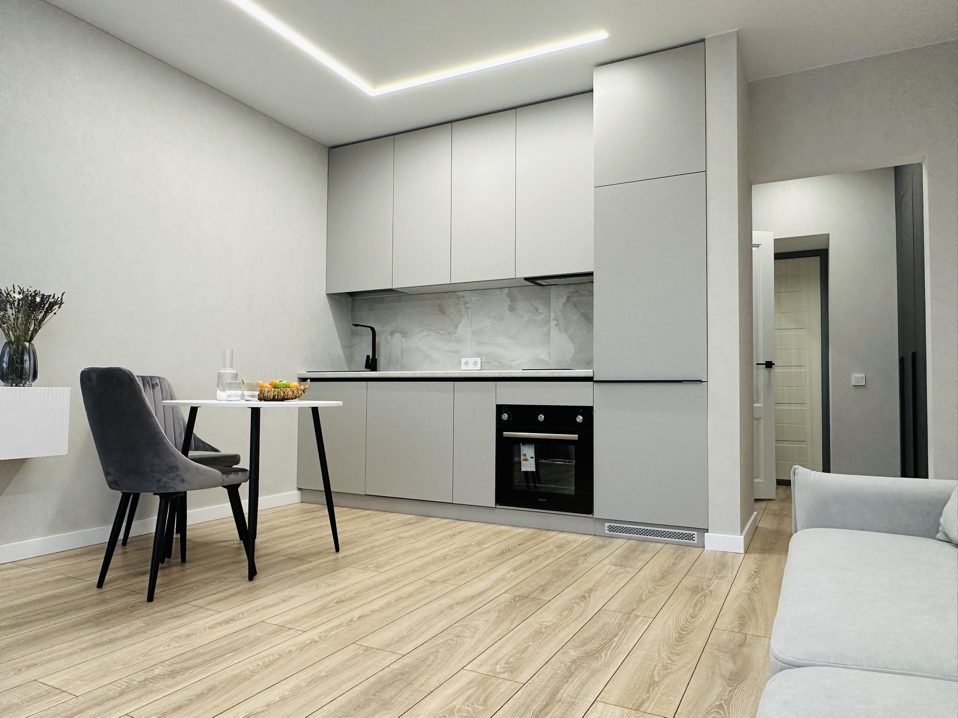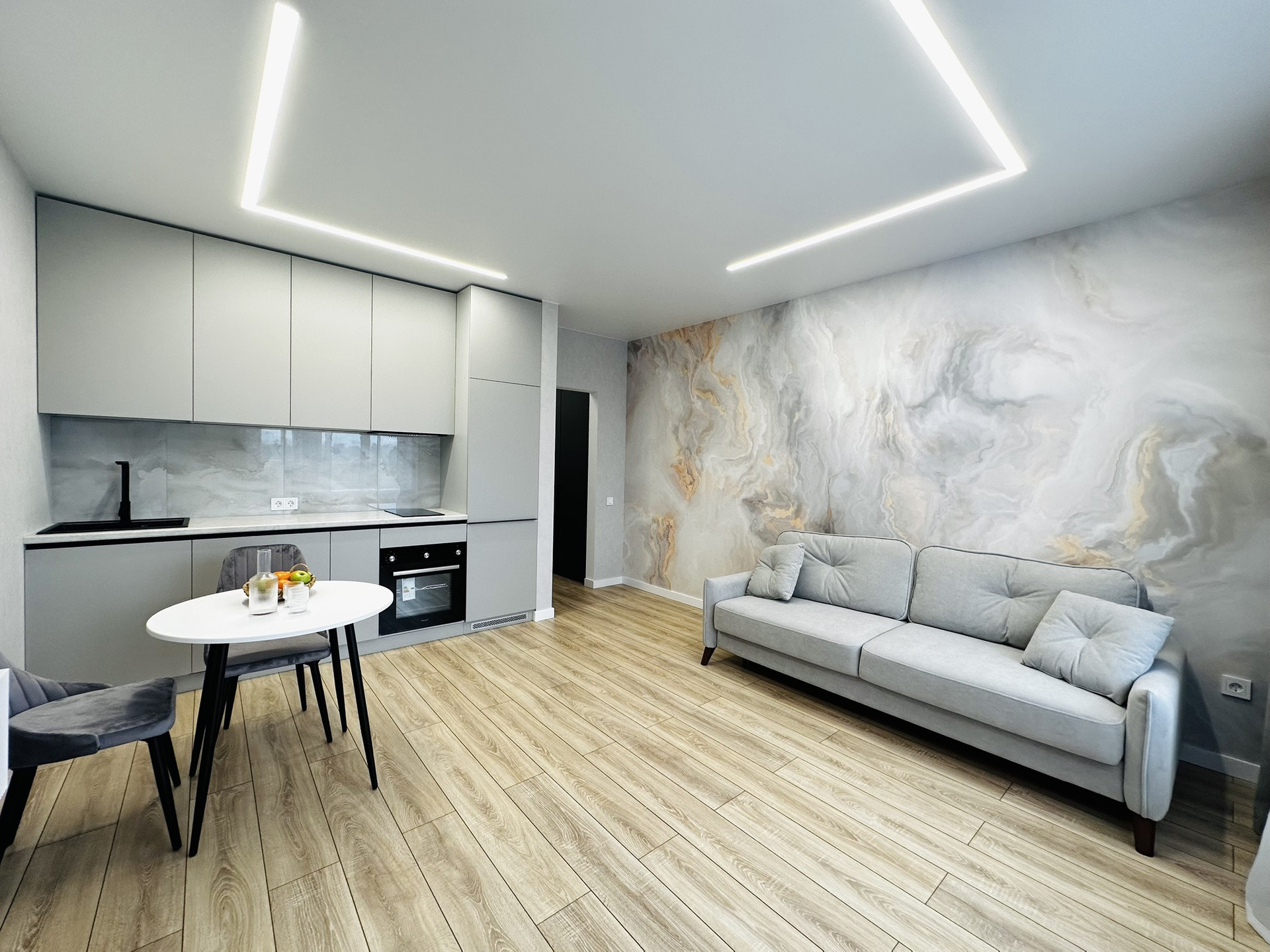 В квартире остаётся вся техника и мебель. Мебель вся делалась на заказ. В ванной комнате теплые полы, а также реализована теплая стена на место полотенцесущителя. Установлена инсталляция, тропический душ скрытого монтажа.