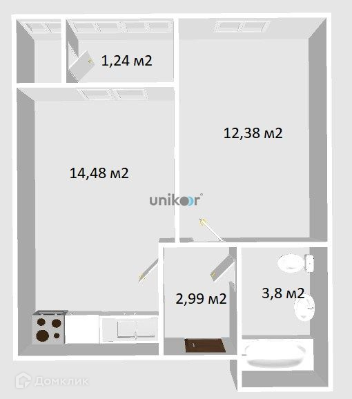 Общая площадь квартиры 34,89 м2