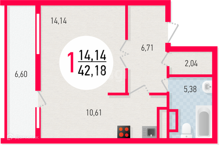 - лоджия 6,60 кв.м - можно объединить и увеличить площадь квартиры