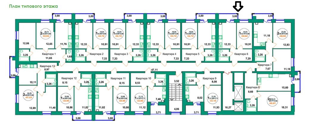 Общая площадь 34 м2