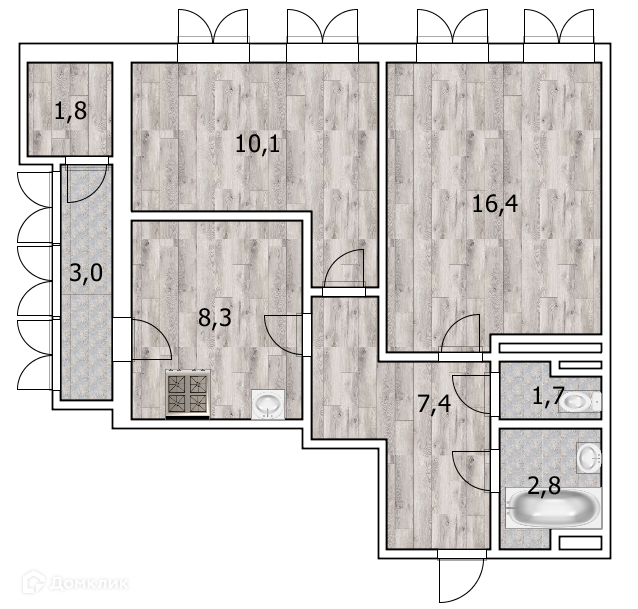Жилая площадь 26.3 м2