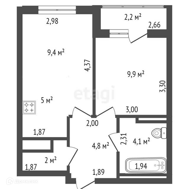 Общая площадь 37 м2
