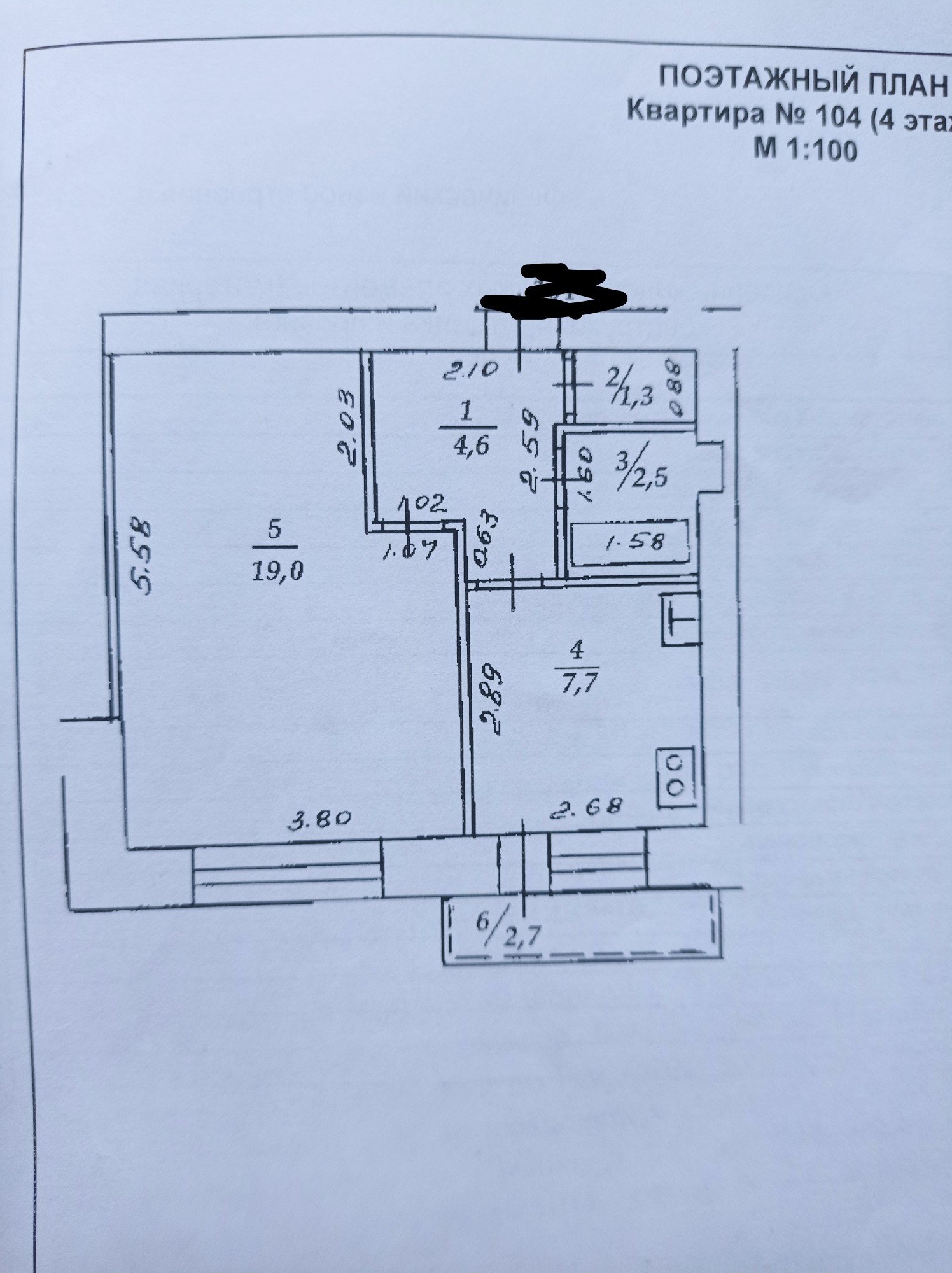 Площадь кухни 7.7 м2