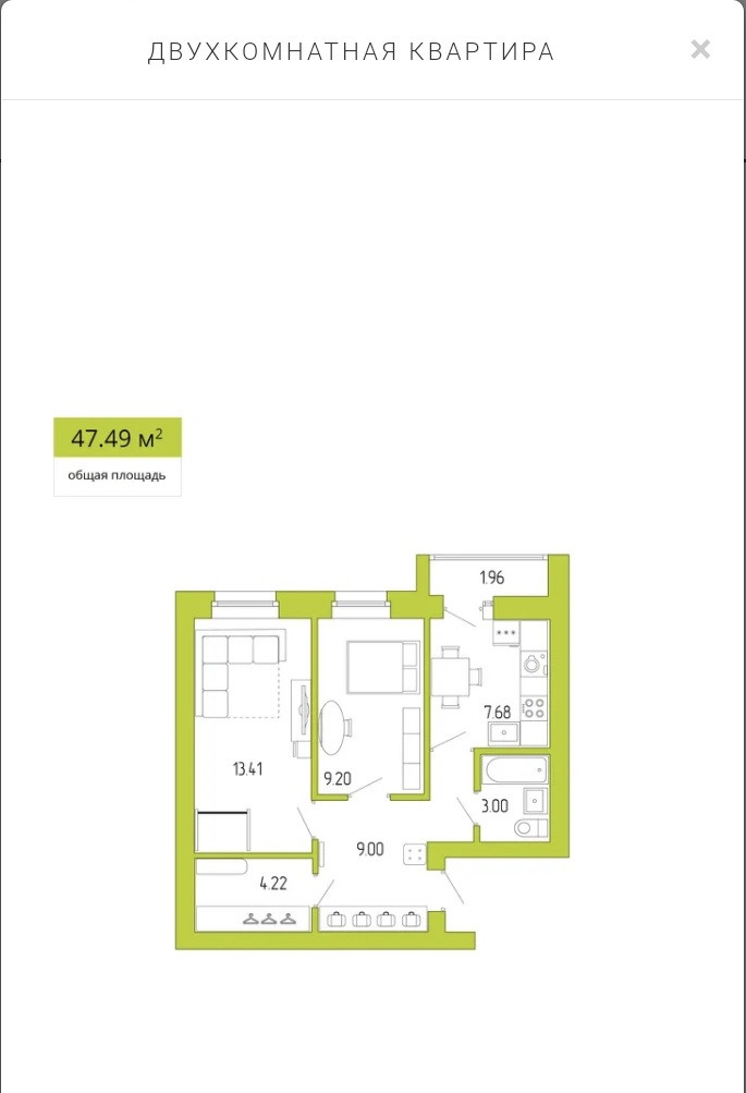 Общая площадь 47.49 м2