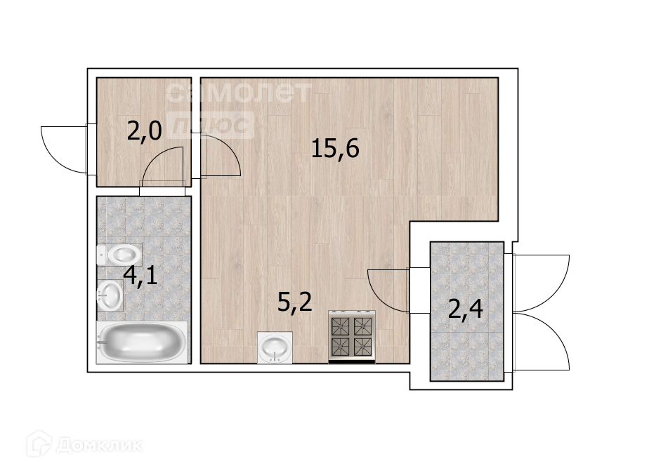 Общая площадь 29,1 м2.