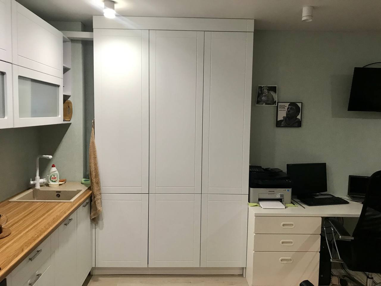 В каждой комнате встроенный шкаф-купе, на кухне новый кухонный гарнитур, закрыты все трубы, много удобно расположенных розеток, подвесной унитаз, душевая стойка, столешница с большой раковиной.