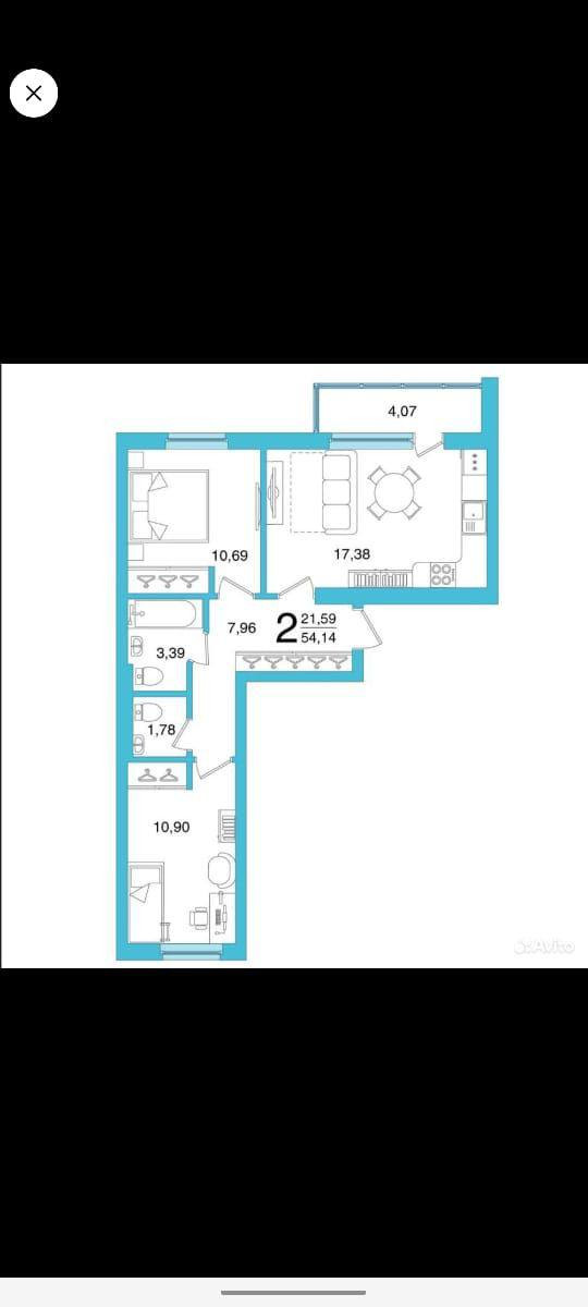 Общая площадь 55 м2
