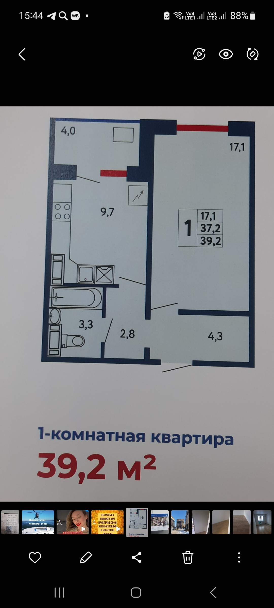 Общая площадь 39.2 м2