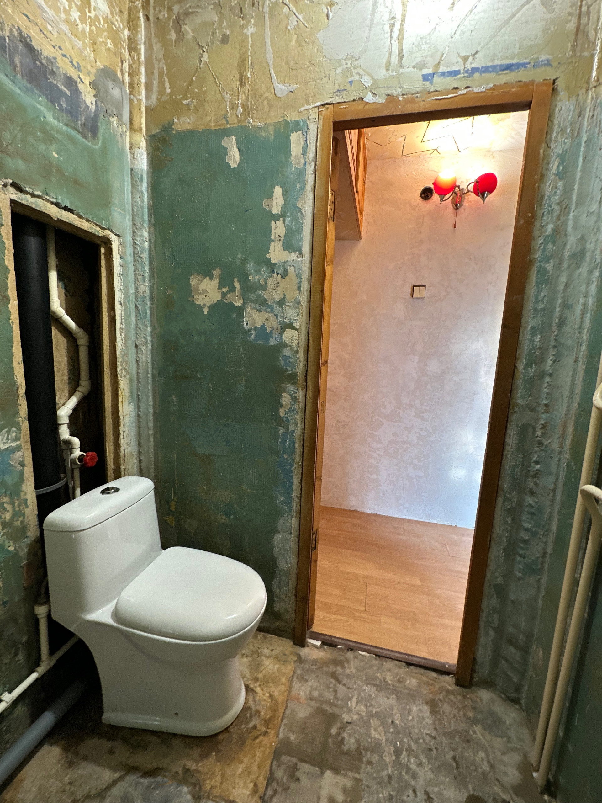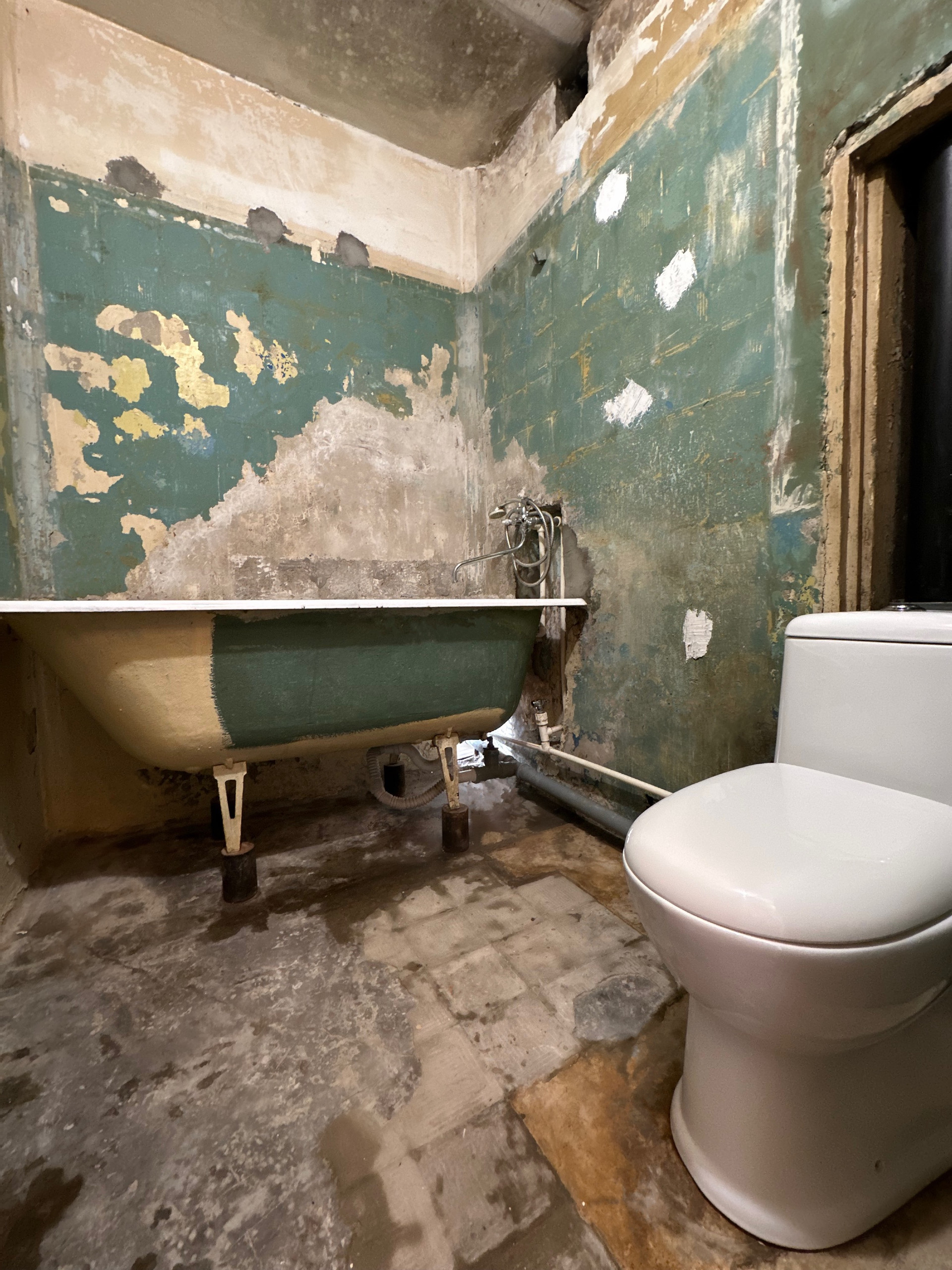 в Ванной комнате (2.9 м3) новые коммуникации, унитаз, чугунная ванна под замену;