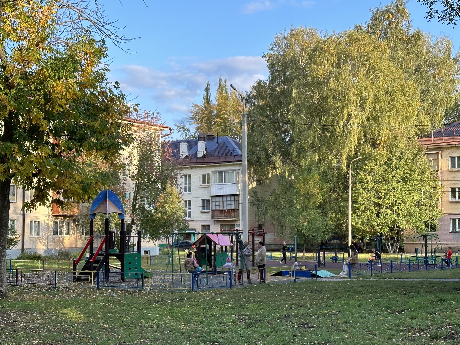 Двор благоустроен, большая парковка, детская площадка.