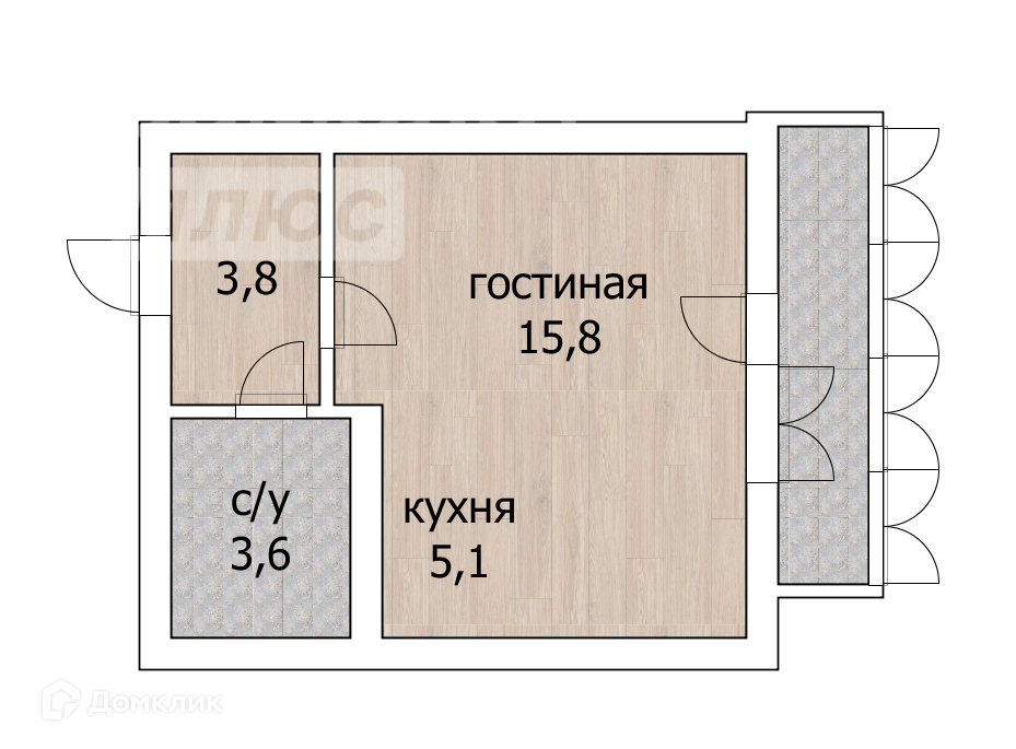 Балкон, лоджия 1 лоджия