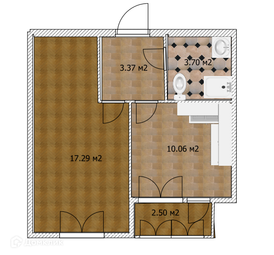 Отличная планировка - жилая комната 17,3 кв.м, просторная кухня 10.1 кв.м с лоджией 3 кв.м. коридор - прихожая правильной геометрической формы.