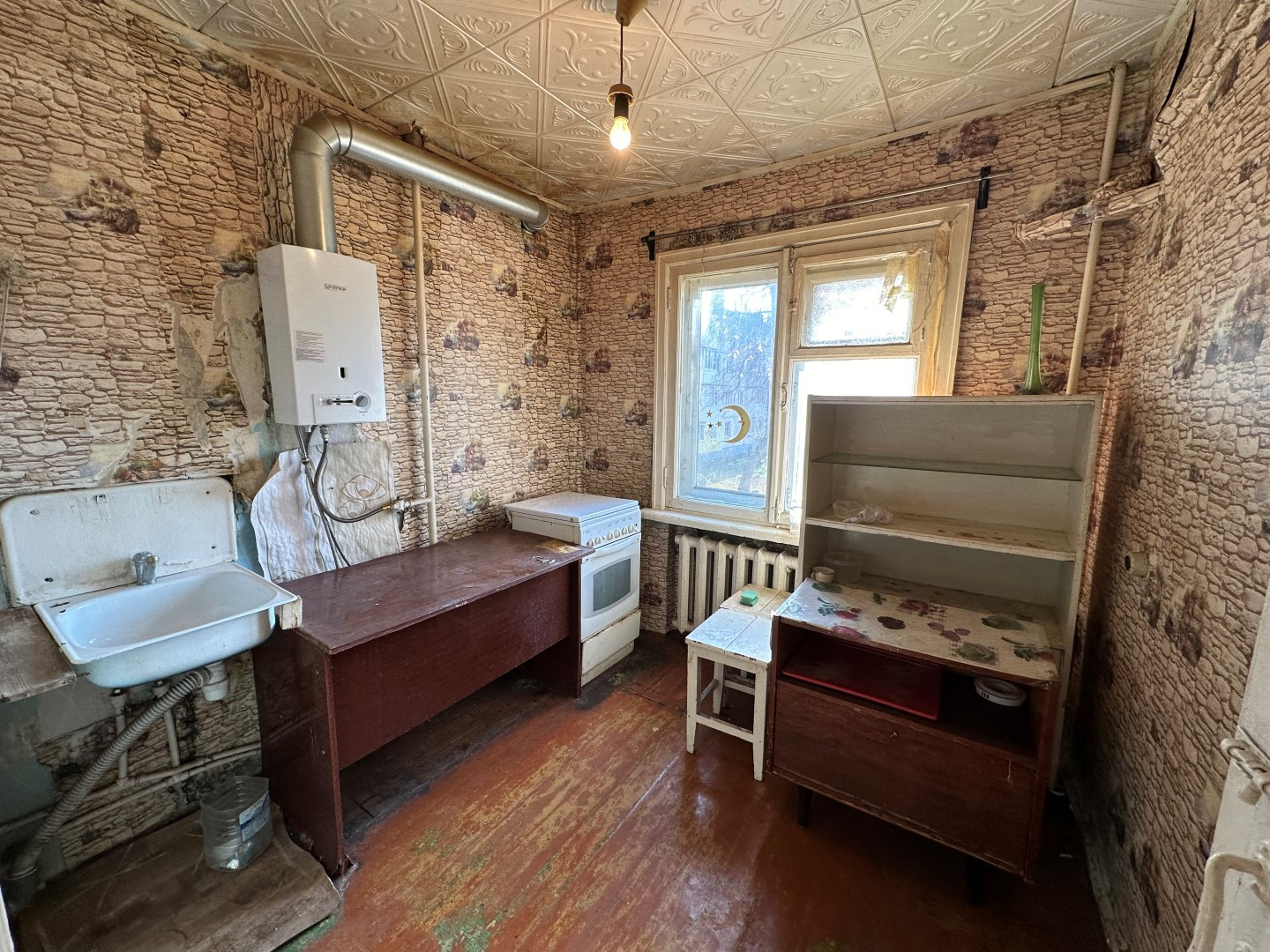 СОСТОЯНИЕ: Комната просторная, санузел совмещен, пол доска, требуется ремонт. Установлены счетчики воды. Вид из окна во двор, квартира очень теплая, балкон из комнаты. На кухне имеется газовая колонка, позволяющая экономить на коммунальных платежах.